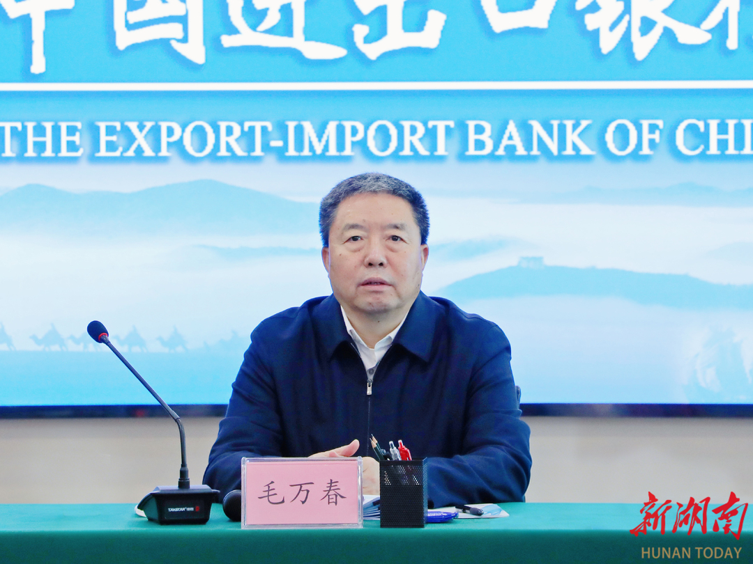 与两家金融机构座谈时,毛万春对两家机构近年来为湖南经济社会发展作出的贡献给予充分肯定和感谢。毛万春指出,要深入学习贯彻党的二十届四中全会、中央经济工作会议精神,落实省委十二届九次全会、省委十二届十次全会暨省委经济工作会议要求,深刻把握金融工作的政治性、人民性,坚定做好金融工作的信心和决心,积极助力湖南外经贸企业拓市场、防风险、促融资,为湖南开放型经济高质量发展作出新的更大贡献。希望两家机构践行央企责任担当,充分发挥在支持地方高质量发展中的独特优势和关键作用,在“要继续实施更加积极的财政政策”与“要继续实施适度宽松的货币政策”下找准金融服务高水平开放的着力点;加大普惠金融和融资增信支持力度,在稳外贸稳外资、支持制造业高质量发展、培育新质生产力等方面加大政策性金融供给力度;切实加大金融支持稳外贸力度,持续提升金融服务外贸企业质效。省政协将充分发挥专门协商机构优势作用,积极搭建政银对接交流平台,通过专题协商、民主监督、提案督办等方式,为加快实现“三高四新”美好蓝图精准建言献策、广泛凝心聚力。