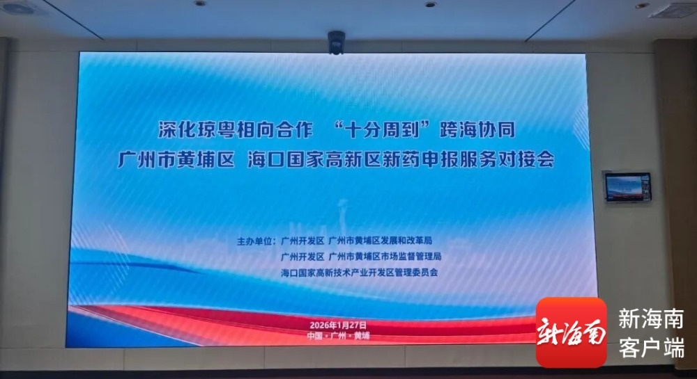 南海网、新海南客户端1月27日消息(记者 王子遥)琼粤相向而行,服务“十分周到”。1月27日,“广州市黄埔区 海口国家高新区新药申报服务对接会”在广州举行,海口国家高新区携园区生物医药企业带着发展中遇到的难题参会,与广州市黄埔区发展和改革局、市场监督管理局、新药申报服务中心相关负责人及专家面对面交流,通过“企业秘书+十分周到”的服务组合拳护航企业高质量发展。