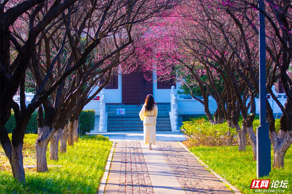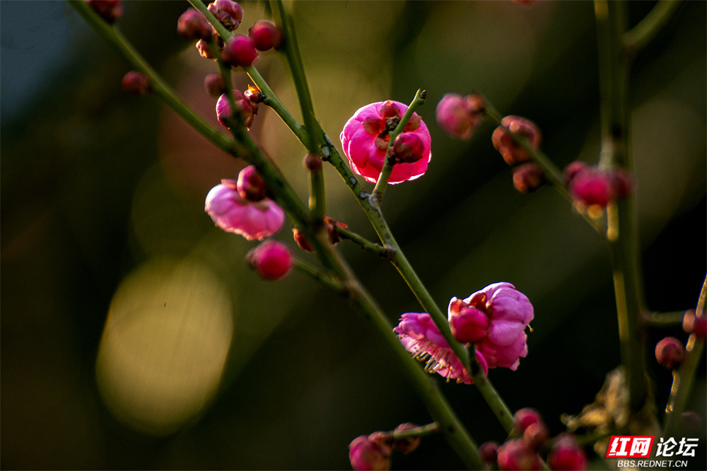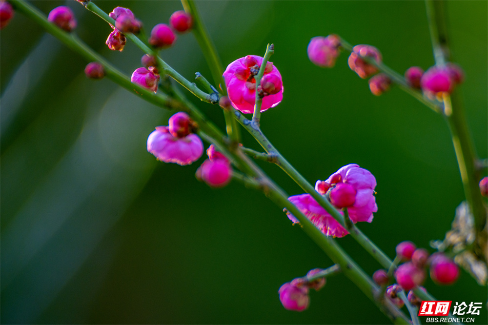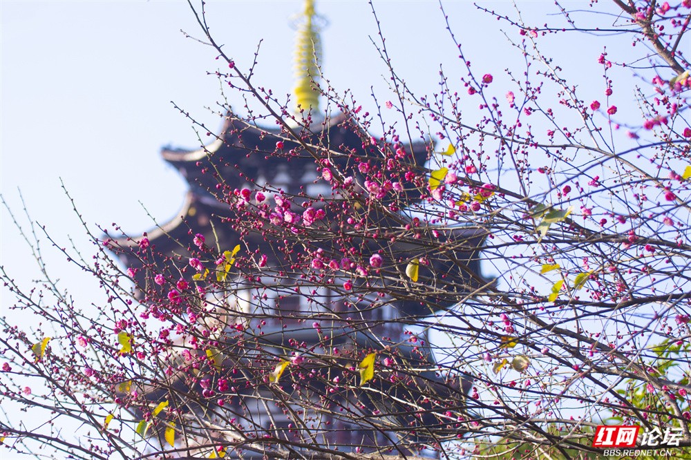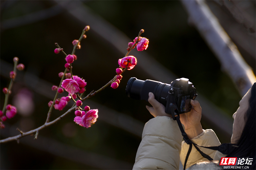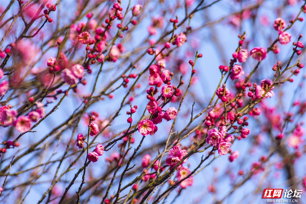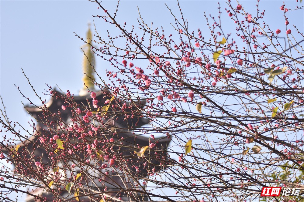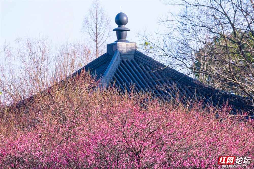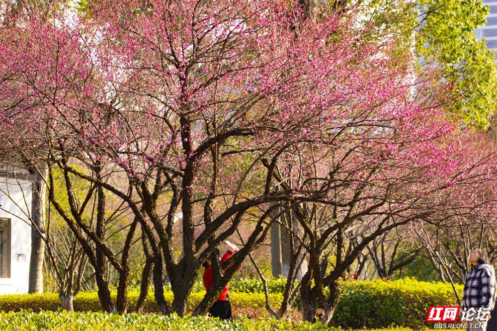 这个冬天,长沙洋湖湿地公园的颜色,是红梅点染的。