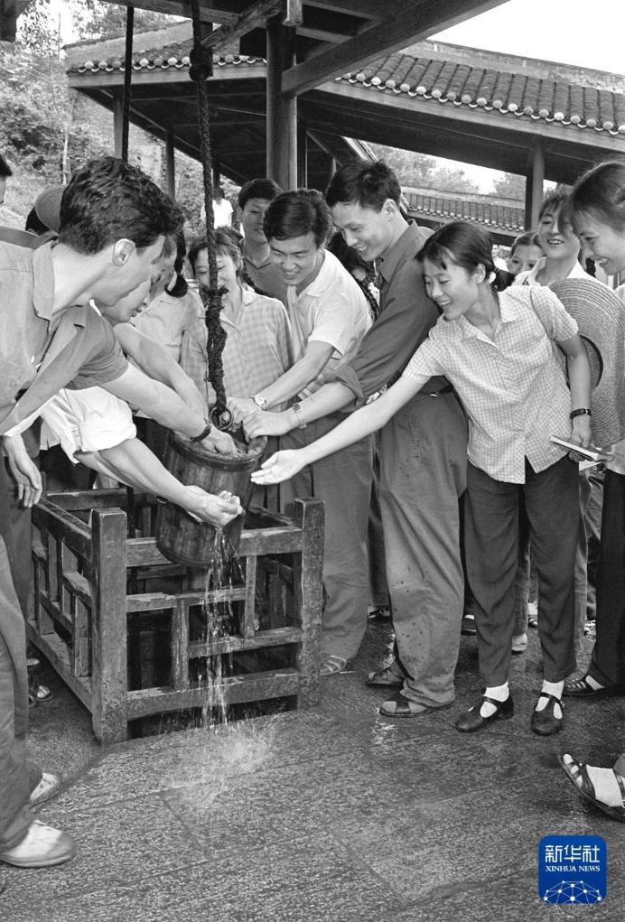 1974年,中国舞剧团的文艺工作者在湖南第一师范学院,参观冷水井(资料照片)。新华社记者 孙忠靖 摄近代以来