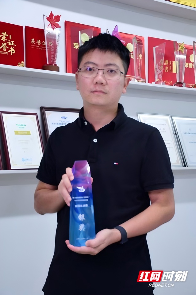 “第一笔融资有四五十万,对我们来说真是及时雨,加上创业补贴、研发奖补等,公司能够更专注于技术研发和产品的打磨,而不必过多担心资金和运营上的压力。”黄旺细数着来自各方的支持:学校减免房租水电,导师在技术上倾囊相授;2021年12月公司被认定为高新技术企业后,获得了30万的扶持资金。2022年湖南省创新创业大赛优胜奖,又有10万元奖金。谈到这些时,黄旺抿着嘴,眼睛紧盯着展示架上的一个个奖杯。
