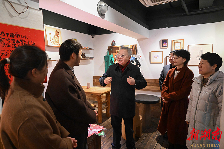 2月16日,沈晓明在白果园旅游休闲街区与青年创业者交流。