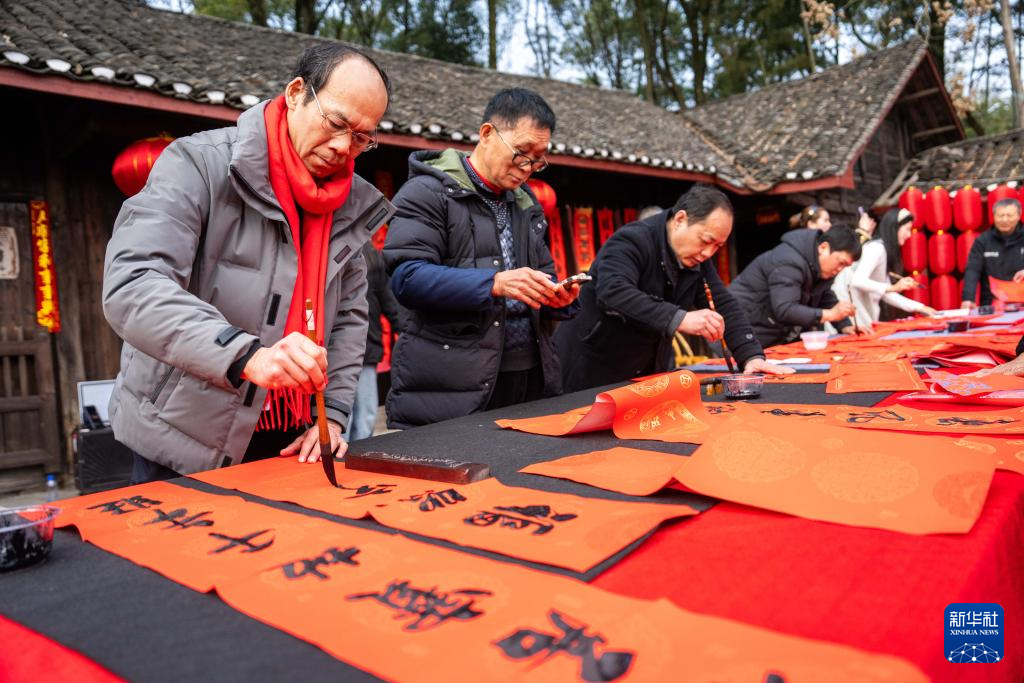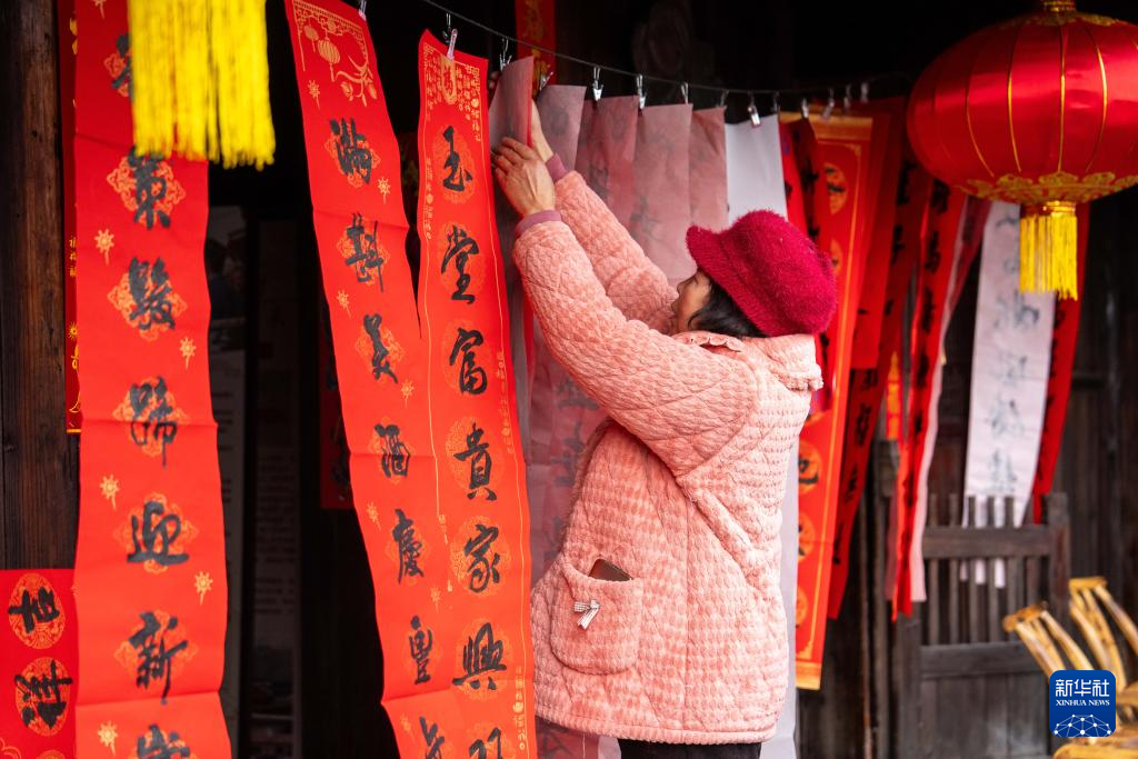 2月10日,村民在谢家铺镇港中坪村写春联。