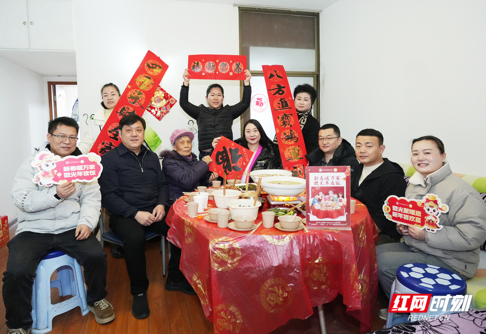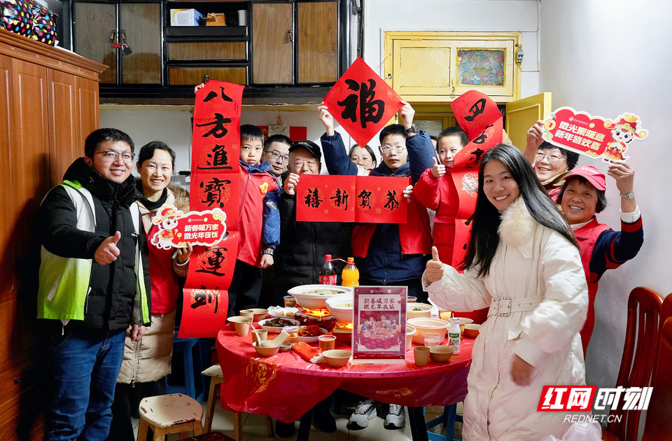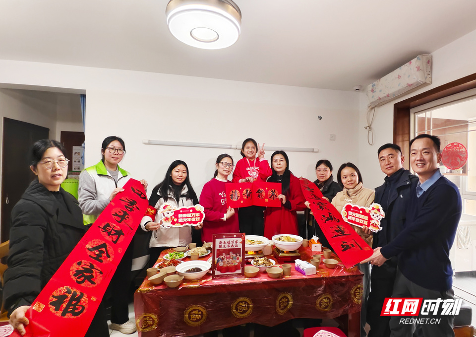 爱心企业代表、社工志愿者走访慰问开福区东风路街道独居老人,共享暖心年夜饭。