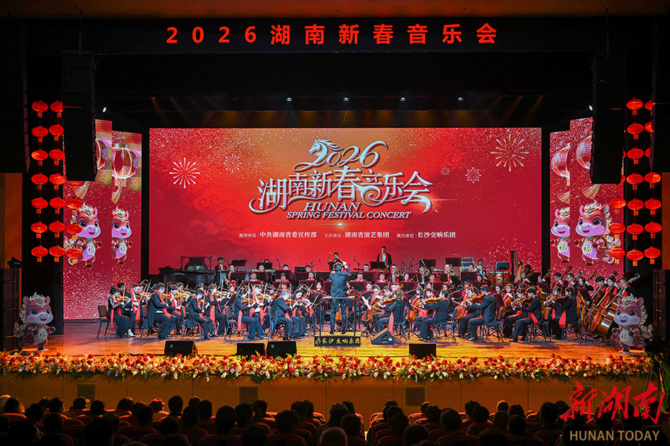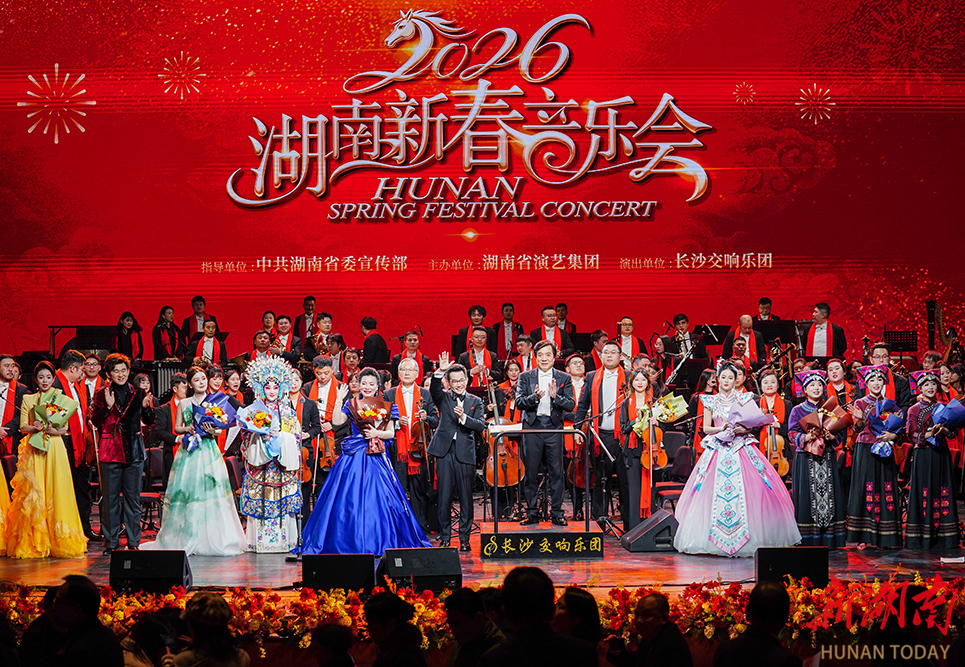 10日晚,2026湖南新春音乐会在湖南大剧院举行。省委书记沈晓明,省委副书记、省长毛伟明,省政协主席毛万春与各界人士代表齐聚一堂,共享音乐盛典,喜迎新春佳节。
