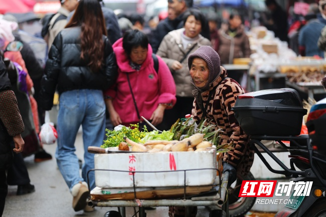 街巷被人流织成一张网,前方是背篓,身后是推车,左边是吆喝,右边是笑语。阳光斜斜铺在摊位上,照亮沾着泥土的莲藕、青翠的菜苔,也照亮每一张赶路的脸。我们走进这片流动的烟火,镜头很轻,生活很重——每一声吆喝都有土地的温度,每一张笑脸都是扎根水土的稳稳幸福。