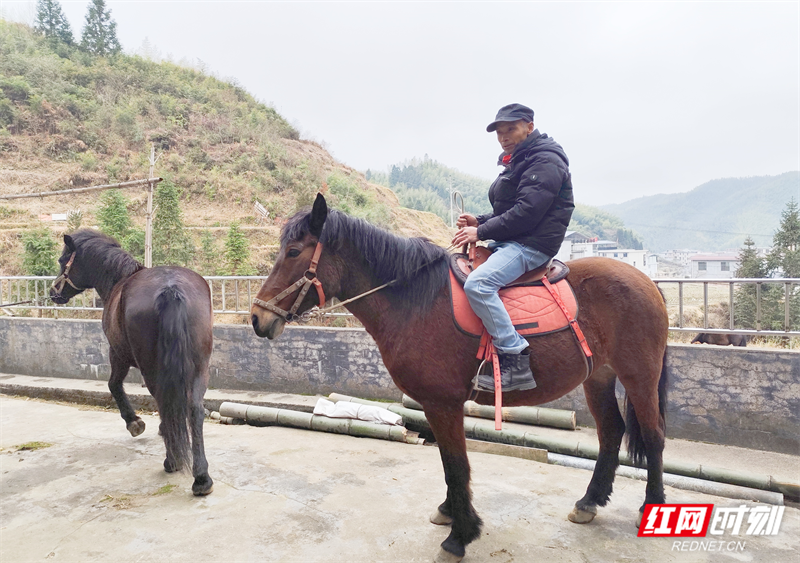 “宽洞村养马高峰期,全村上了200匹,永州道县马匹都被我们买光了,就到贵州去买,2万多元一匹。我一辈子与马结缘,至今仍养了8匹马。”马年说马,余国青浑身龙马精神。