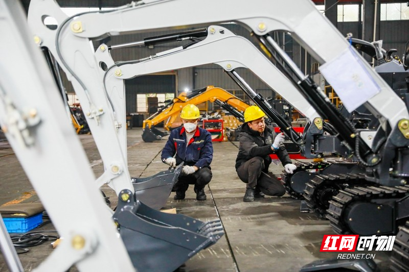 红网时刻新闻2月27日讯(通讯员 刘贵雄 陈祉凝)2月26日,湖南省永州市新田县产业开发区德力重工有限公司生产车间,工人在生产线上赶制挖掘机订单产品。春节假期过后,湖南省新田县产业开发区各企业迅速复工复产,开足马力忙生产、赶订单、拓市场,奋力冲刺马年首季“开门红”。