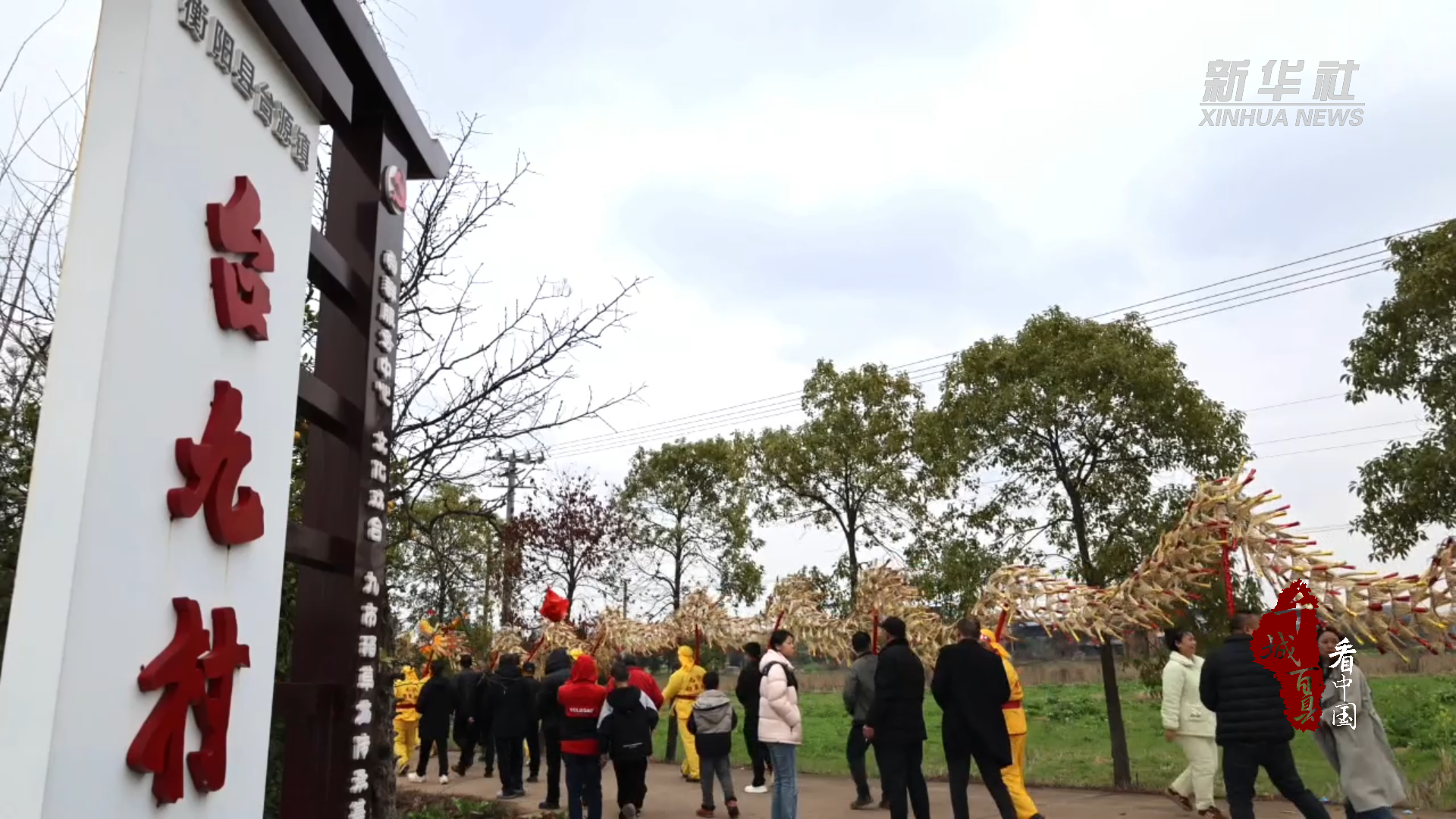 农历正月初八,湖南省衡阳县台源镇台九村锣鼓喧天、人声鼎沸,省级非物质文化遗产代表性项目“九市稻草龙”走村串户,开展巡游展演。