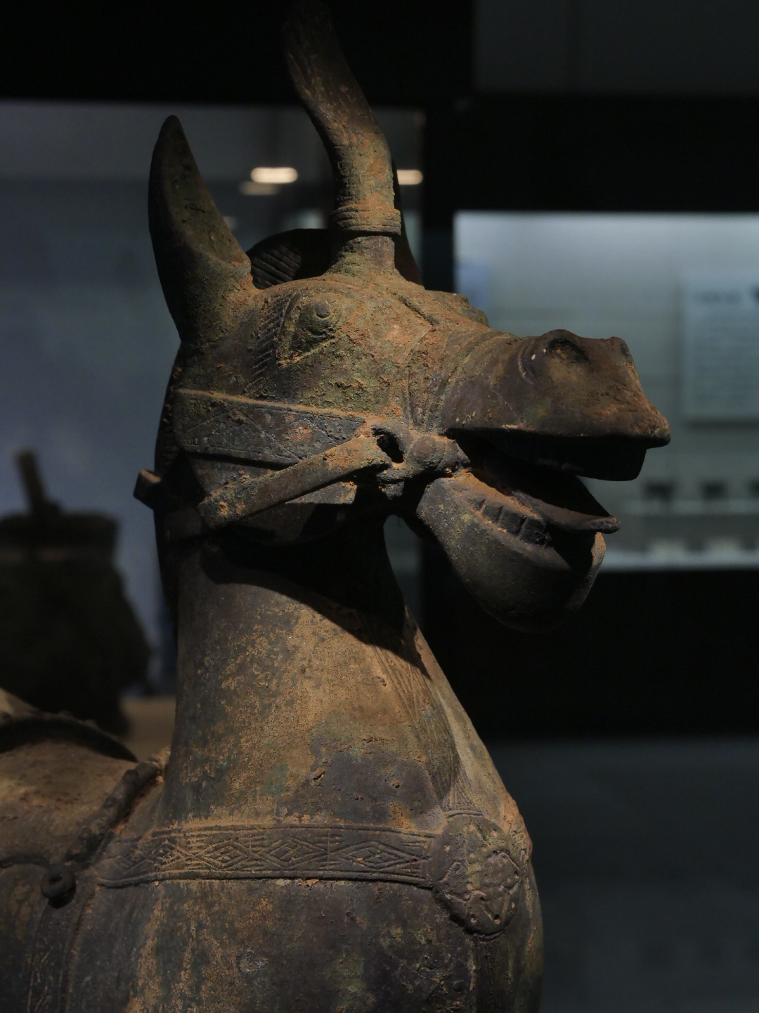 此铜马具有大宛良马的神勇气质,距今有近2000年的历史。马头上有一只神秘的触角称“雄胜”,是神马的象征。它的精神,嘶鸣在历史的漫长时间里,至今不息。