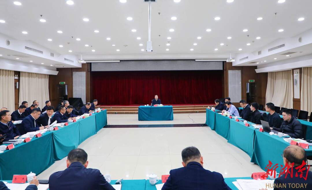 近日,省政协主席毛万春率队在省通信管理局、中国铁塔股份有限公司湖南省分公司、中国邮政集团有限公司湖南省分公司等单位调研。图为毛万春在省通信管理局主持召开座谈会。