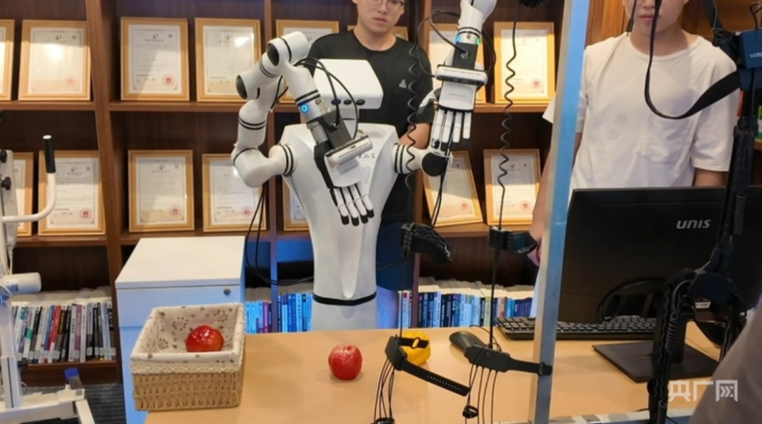 ▲湘江实验室相关团队训练具身智能机器人。(图源:央广网)