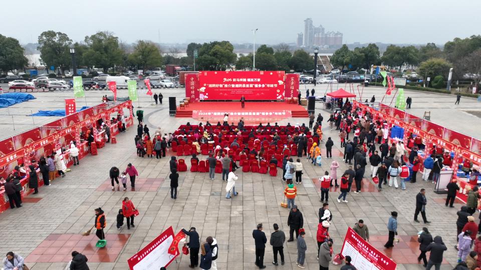 2月7日,湖南省湘阴县左宗棠广场人声鼎沸、锣鼓喧天,“跃马奔腾·福至万家”2026年“湘阴好物”推介暨首届“福多多”年味节在此举行。本次活动融合传统年俗展演、本土农产品推介与暖心公益,为市民打造了一场可看、可品、可感的沉浸式年味盛宴。
