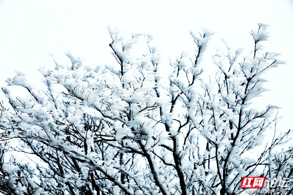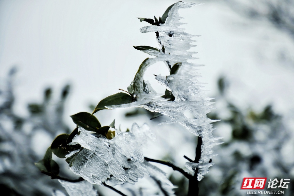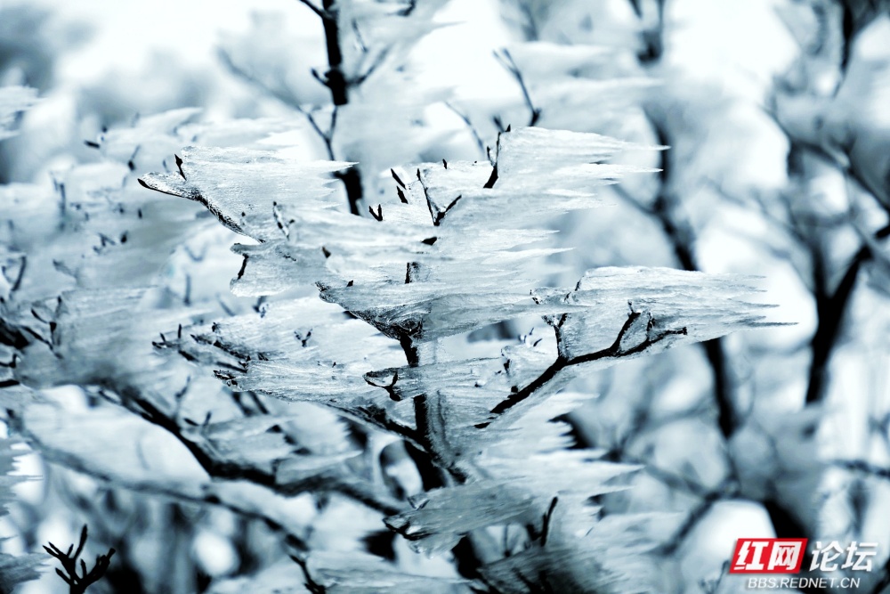 这处属于长沙近郊的南国山景,不同于北国飞雪的苍茫磅礴,却以纤细柔美的姿态凝固于寒枝,宛如凝驻的浪花,又似定格的流云。它们在凛冽山风中静静伫立,脆弱如梦境,却坚韧如诺言,唯有历经跋涉与等待的旅人,方能邂逅这片冬日限定的冰洁盛宴。