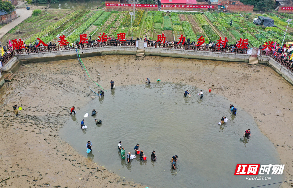 干塘捞鱼现场。