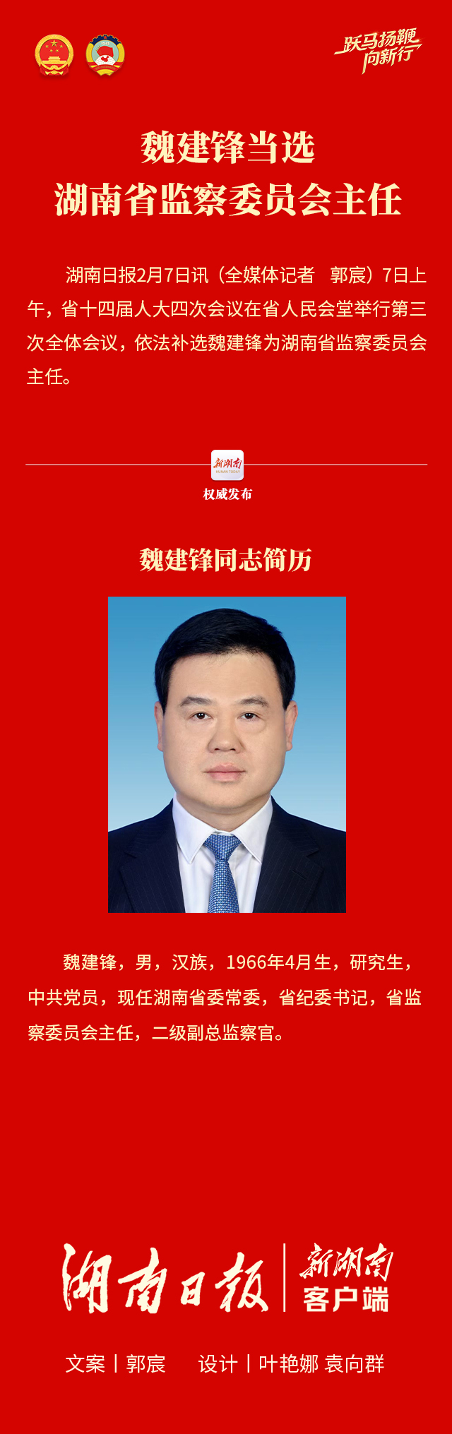 魏建锋当选湖南省监察委员会主任