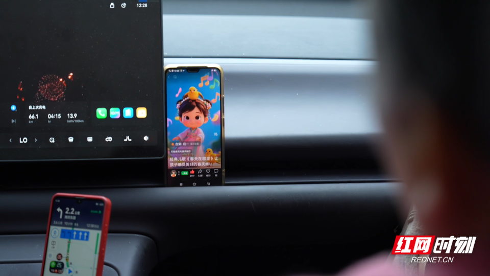 路上他放着歌,一首接一首。放到《春天在哪里》的时候,周春燕轻轻哼了起来,调子不太对,双手却一下一下地鼓着掌,合着音乐打起了拍子。