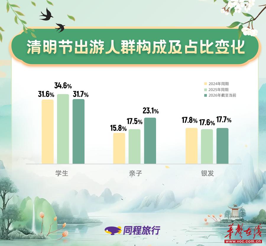 (清明节出游人群构成及占比变化。 图/同程旅行)