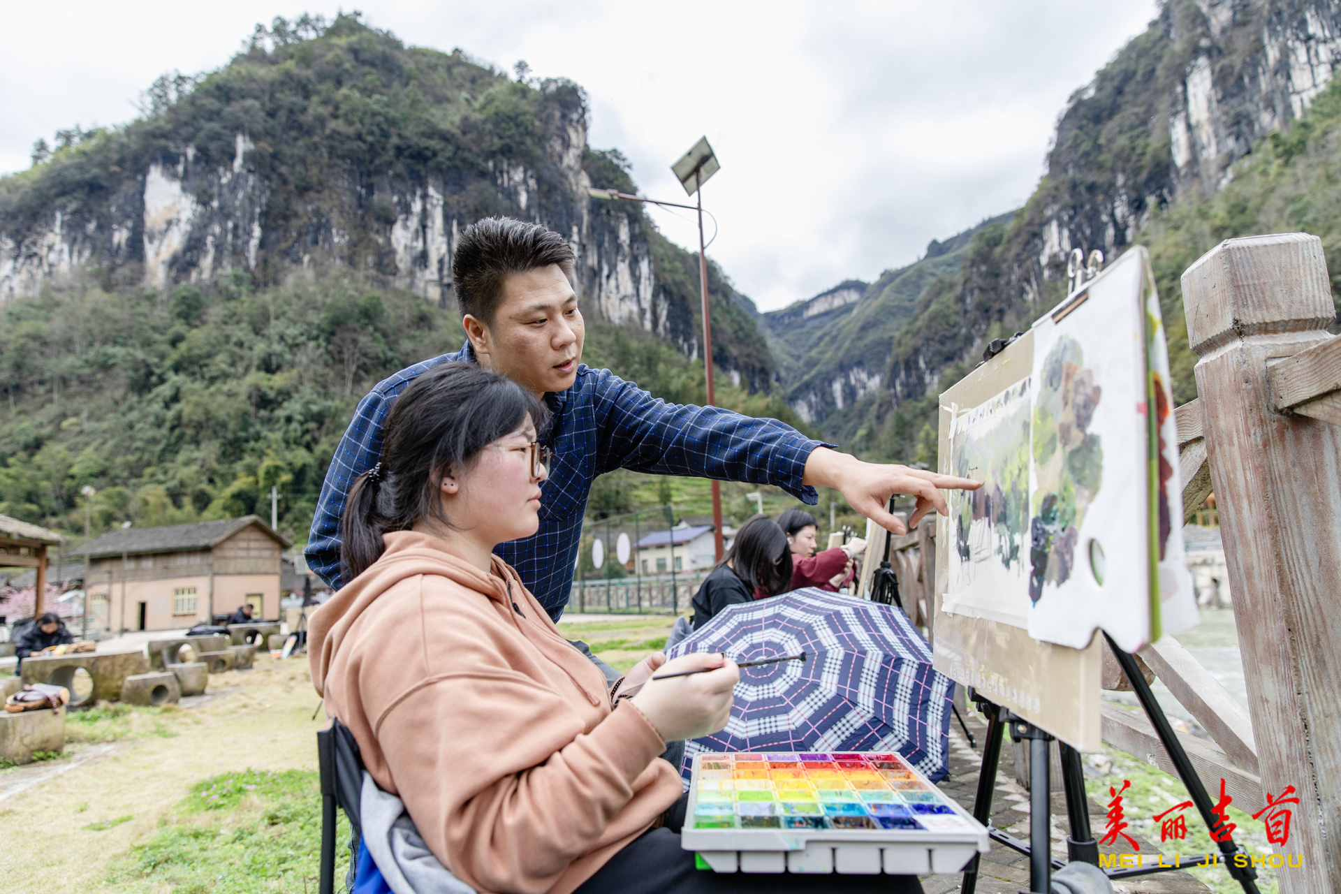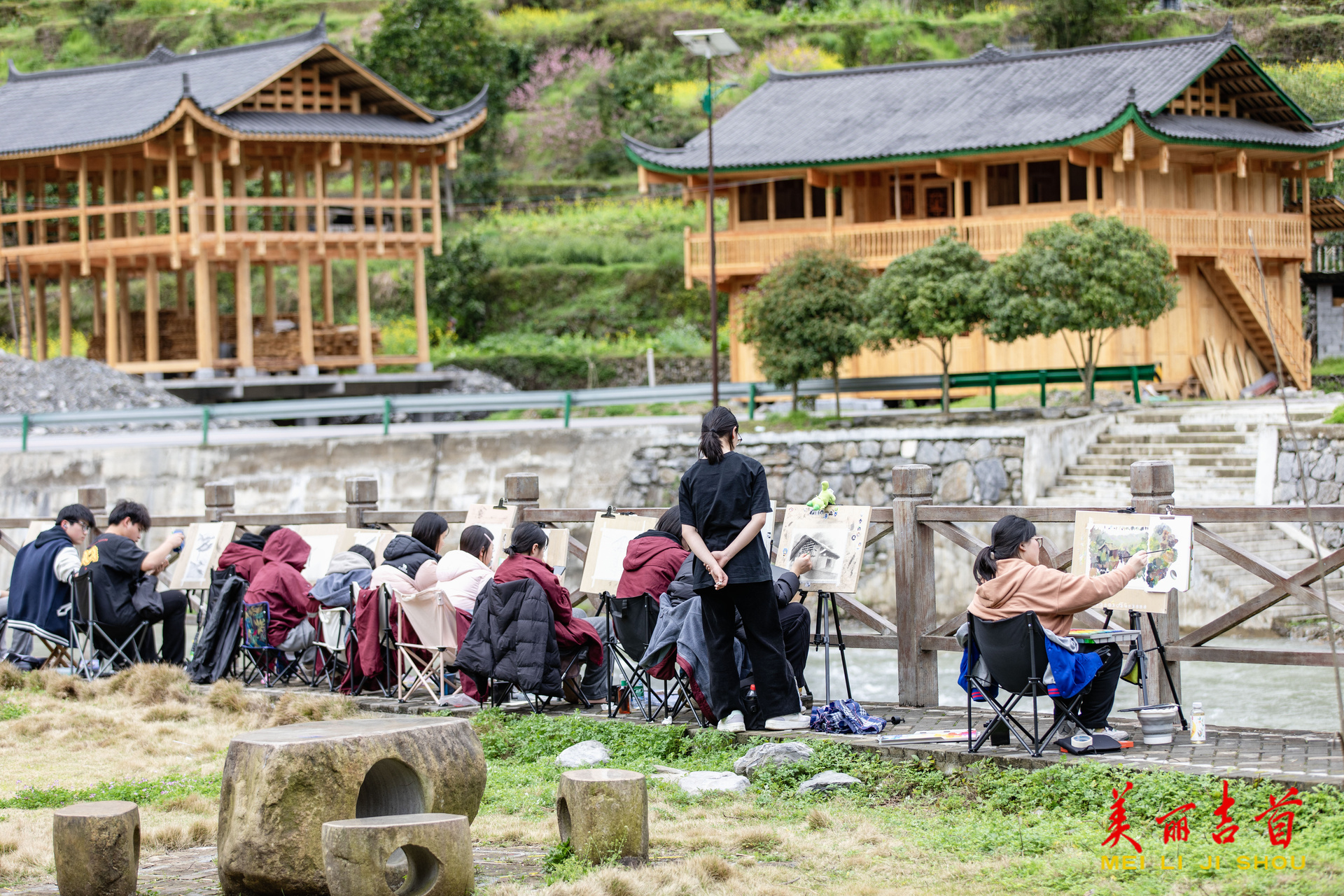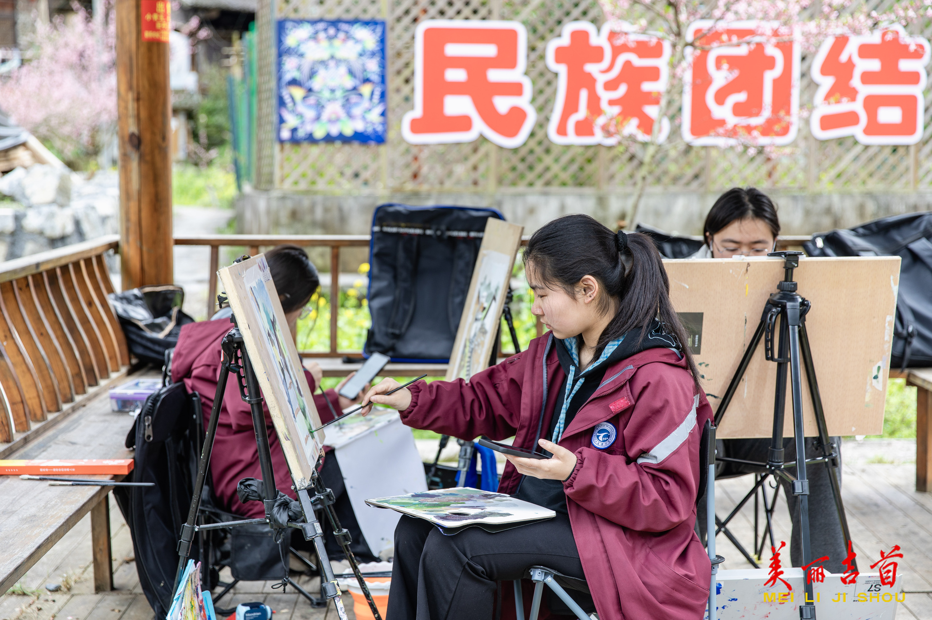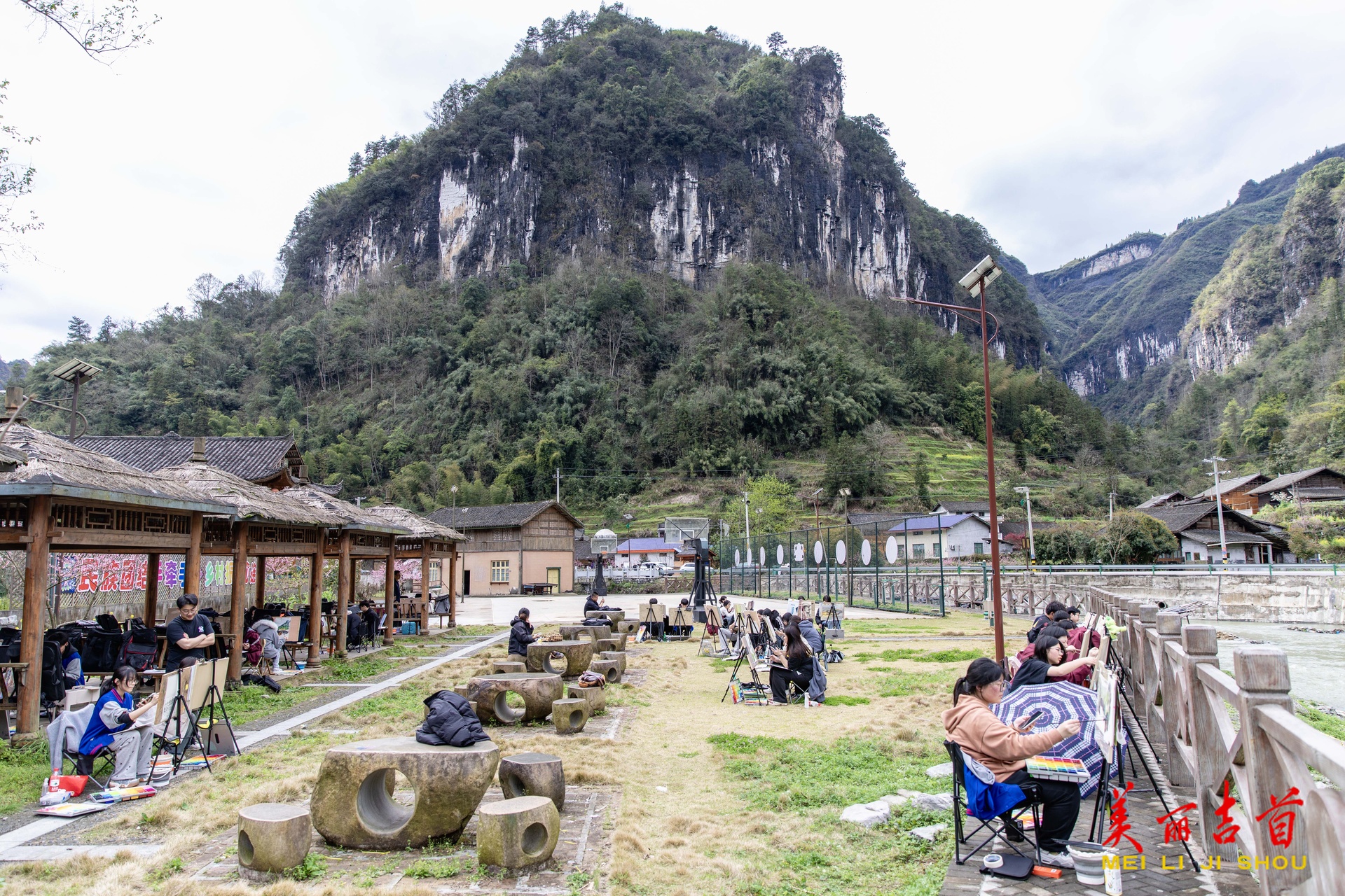 吉首市融媒体中心3月30日讯(全媒体记者 彭璟)3月26日,吉首市矮寨镇坪年村,来自宁乡市的学生正在写生。三月的坪年苗寨春暖花开、风光秀丽,吸引了众多美术学子前来捕捉乡村美景。近年来,该村依托“中国传统村落”和“中国少数民族特色村寨”优势,推进文旅融合,已成为当地及外来游客乡村游的热门地点之一。