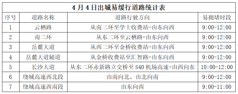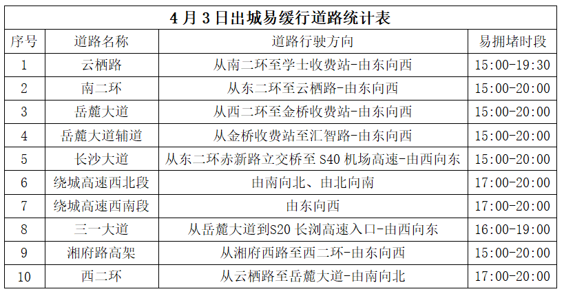 (4月3日及4月4日,出城易缓行路段。 图/长沙公安交警)