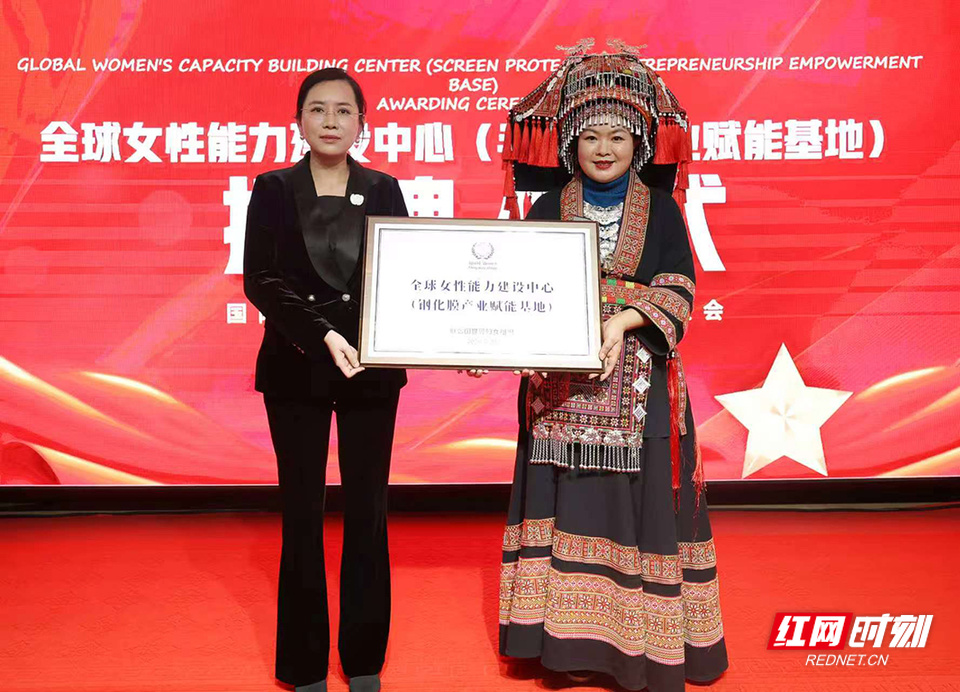 “从一个人的奋斗到带领一群人致富,再到回馈家乡,李洪梅的实践为全球女性经济赋权提供了中国样本。”在座谈会上,安哥拉·罗由衷赞叹道,并亲自为李洪梅颁发了“全球女性能力建设领航人”证书。安哥拉·罗动情地说:“谁能想到,一片小小的手机膜里,竟然藏着女性经济赋权的密码,更关乎全球数字产业的未来。”巴哈马驻华特命全权大使Paulette Bethel更是直言:“李洪梅不仅是中国制造领域的骄傲,是永州江华的一张亮丽名片,更是全球女性的榜样。她的故事告诉我们,女性完全可以在任何领域创造奇迹。” 靠一片小小手机膜闯出一片天,李洪梅所创办的企业不仅获得劳伦斯世界纪录认证——全球最大的手机膜生产基地,以一片好膜供全球,更以年产能6亿片的惊人数字,让世界见识了中国制造的硬实力。在这个传统印象中以男性为主的制造行业,李洪梅的企业女性员工比例超过60%。从全球最大的手机膜生产基地,到“天下瑶族第一殿”盘王殿,再到神奇的瑶药文化,李洪梅用她的方式,让世界重新认识了湖南江华这个瑶族小城。