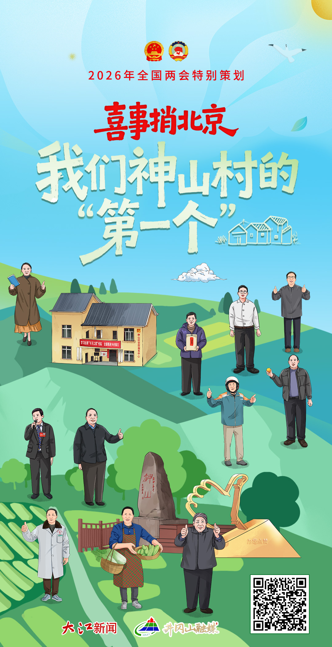 时刻新闻 —分享— ▲点击上方图片或扫描二维码查看手绘长卷H5大江新闻讯 春风浩荡,山河焕新。2026年全国两会即将召开,大江新闻客户端联合井冈山市融媒体中心,推出全国两会特别策划《喜事捎北京丨我们神山村的“第一个”》。 来源:大江新闻 编辑:张盟