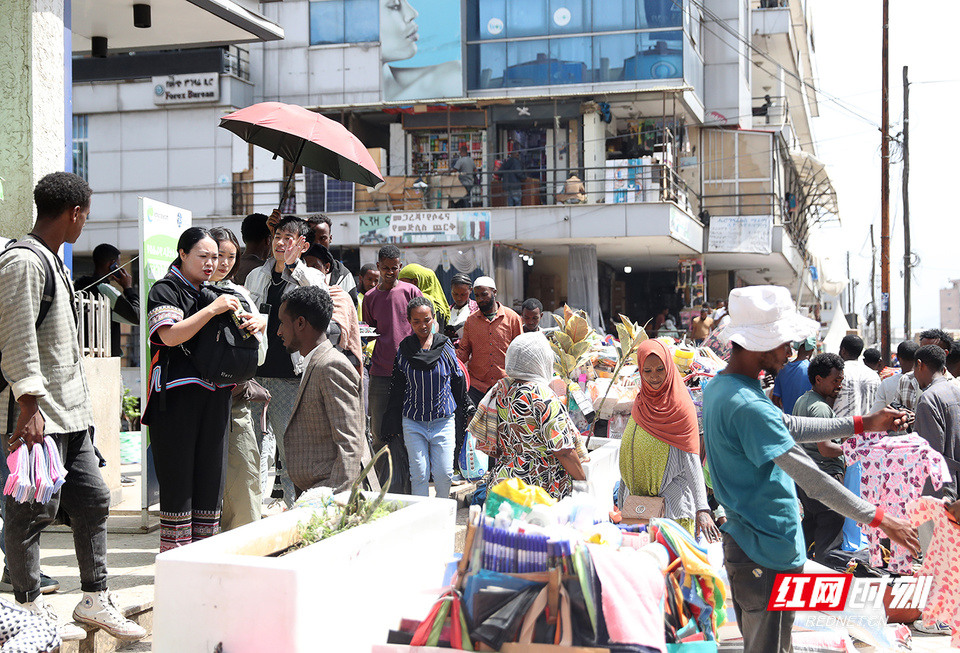 抵达当天,她把我们领进埃塞俄比亚最大、也最喧嚣的梅尔卡托——灰尘与叫卖齐飞,阳光从棚顶缝隙洒下。十年前,就是这条被雨水泡烂的窄巷,她背着同一款双肩包,五彩瑶绣掠过机油与香料的味道,一家家叩问手机配件柜台。今天,她仍把双肩包往身前一护,像护着当年那包凑来的样品手机膜;而市场尽头,从前拒绝她的店主,正用中文招呼她“Milake,进来喝茶”。