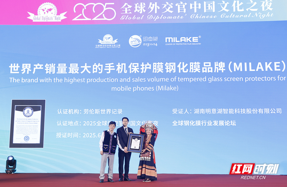 2025年9月,北京某酒店正在举办的全球外交官中国文化之夜,她依然穿着那身瑶服,劳伦斯纪录认证官念出:“世界产销量最大的手机保护膜品牌——MILAKE,有请创始人李洪梅女士上台接受授牌”,掌声像潮水般涌起。她接过证书,眼前却闪过非洲车间的缝纫机、市场里女孩的笑、幼儿园孩子塞进她口袋的糖纸。纪录的背面不只是数字,而是国内几千位员工的家庭,亦是一万公里外,因她的手机膜而被点亮灯的家庭。