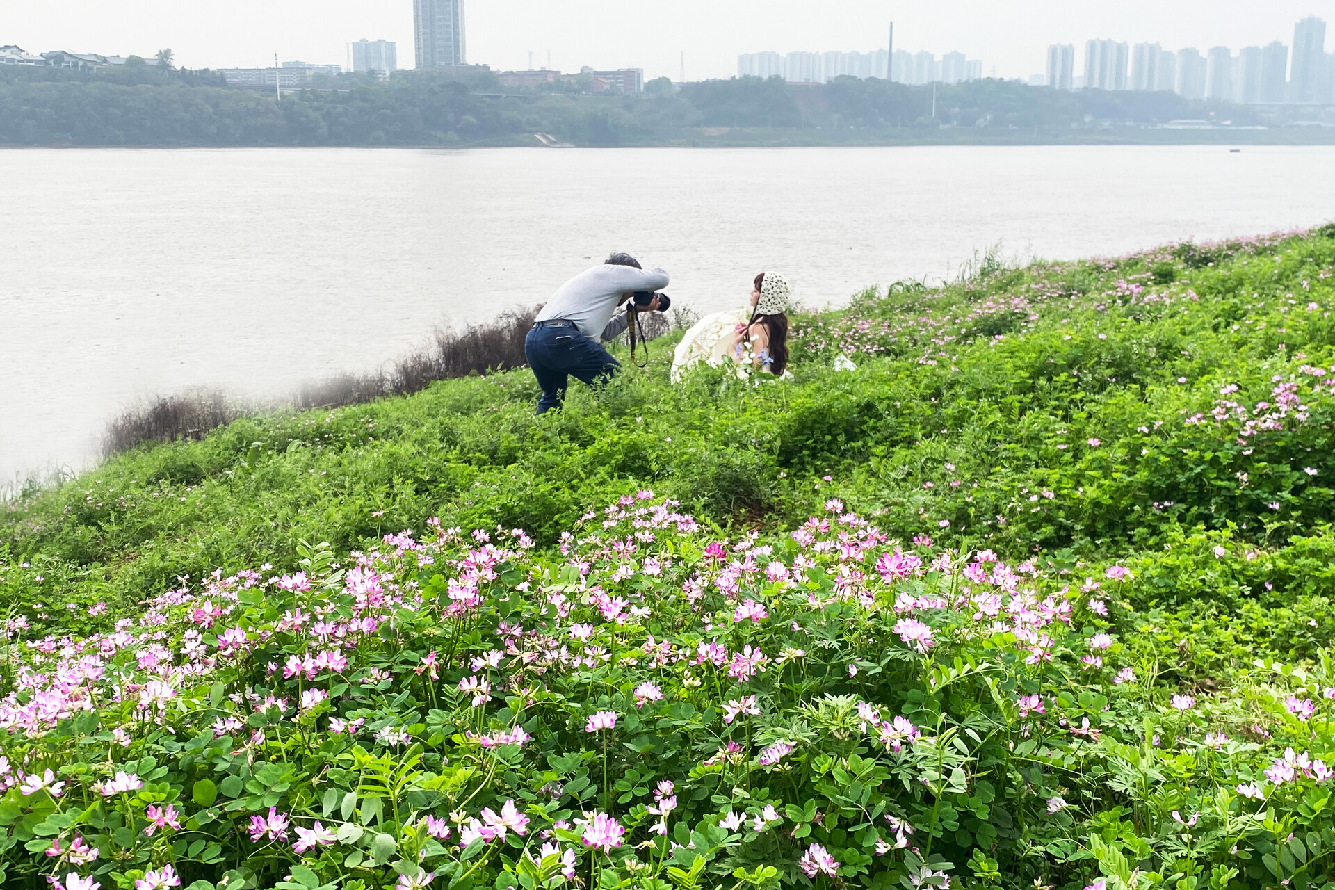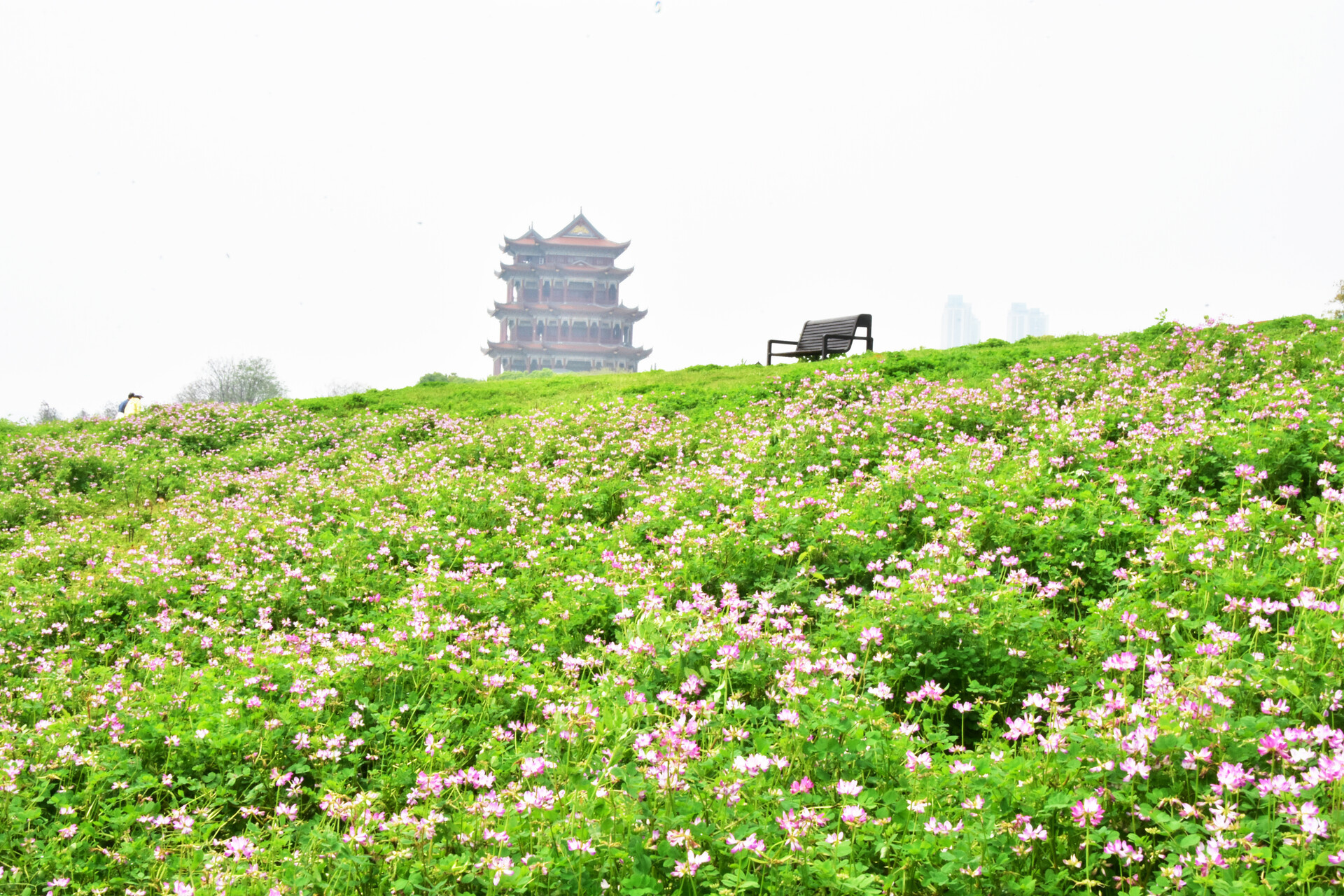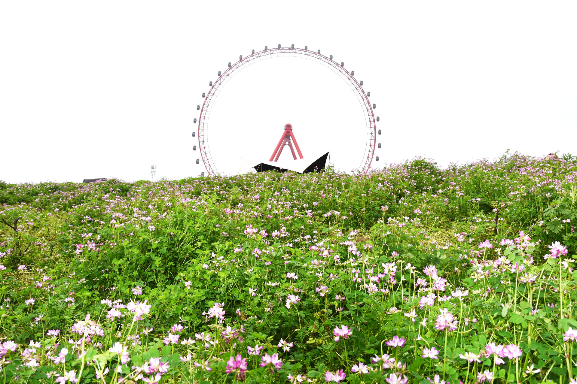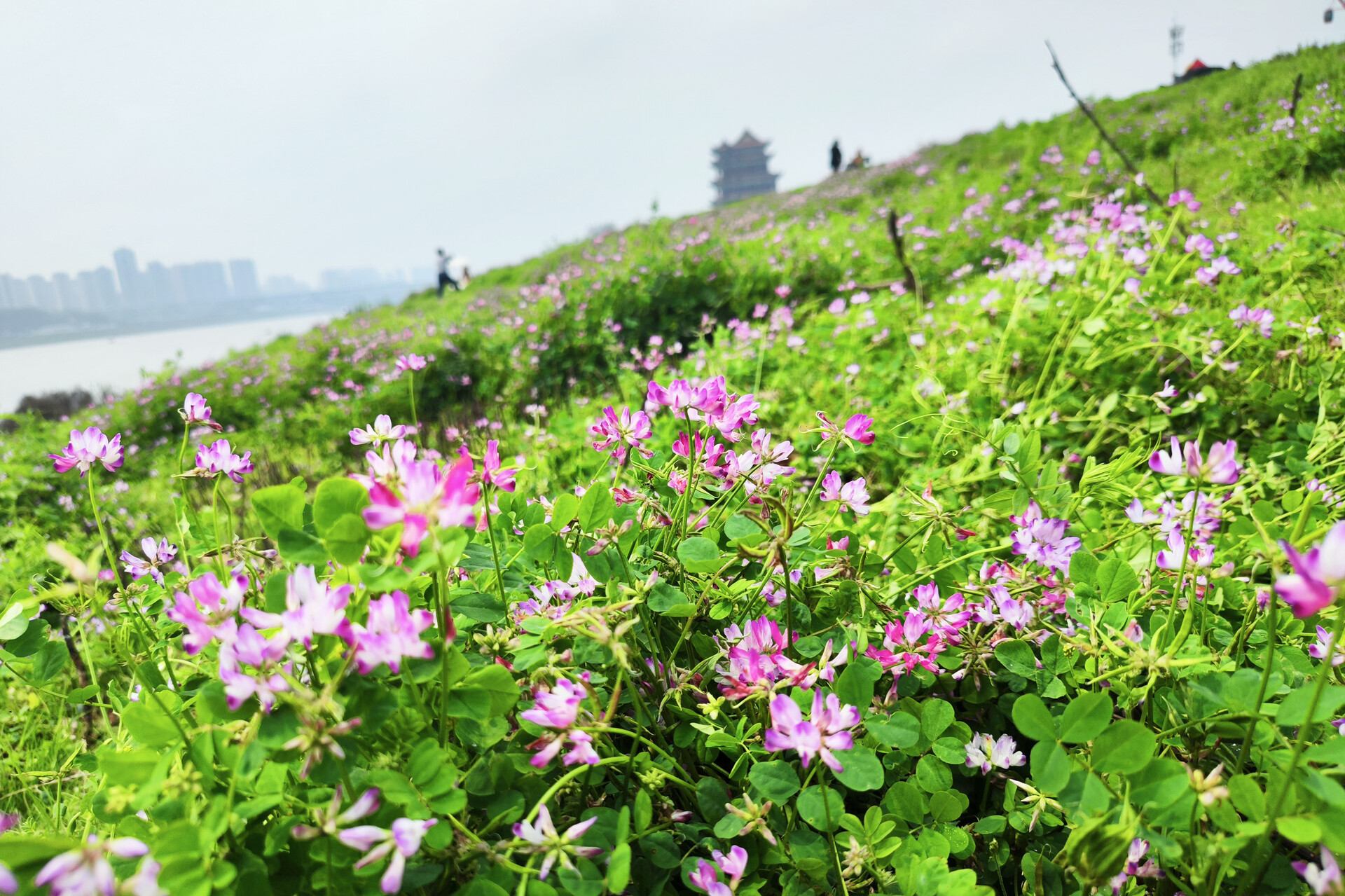 在万楼青年码头摩天轮下,有一片被春天遗忘的紫色花海。当您漫步在万楼江畔时,走近才发现,星星点点的紫云英正悄然盛开。风起时,花浪轻摇,吹散了疲惫,也吹来了属于雨湖的春日限定。这里的浪漫,不是精心修剪的园艺,而是野蛮生长的诗意。