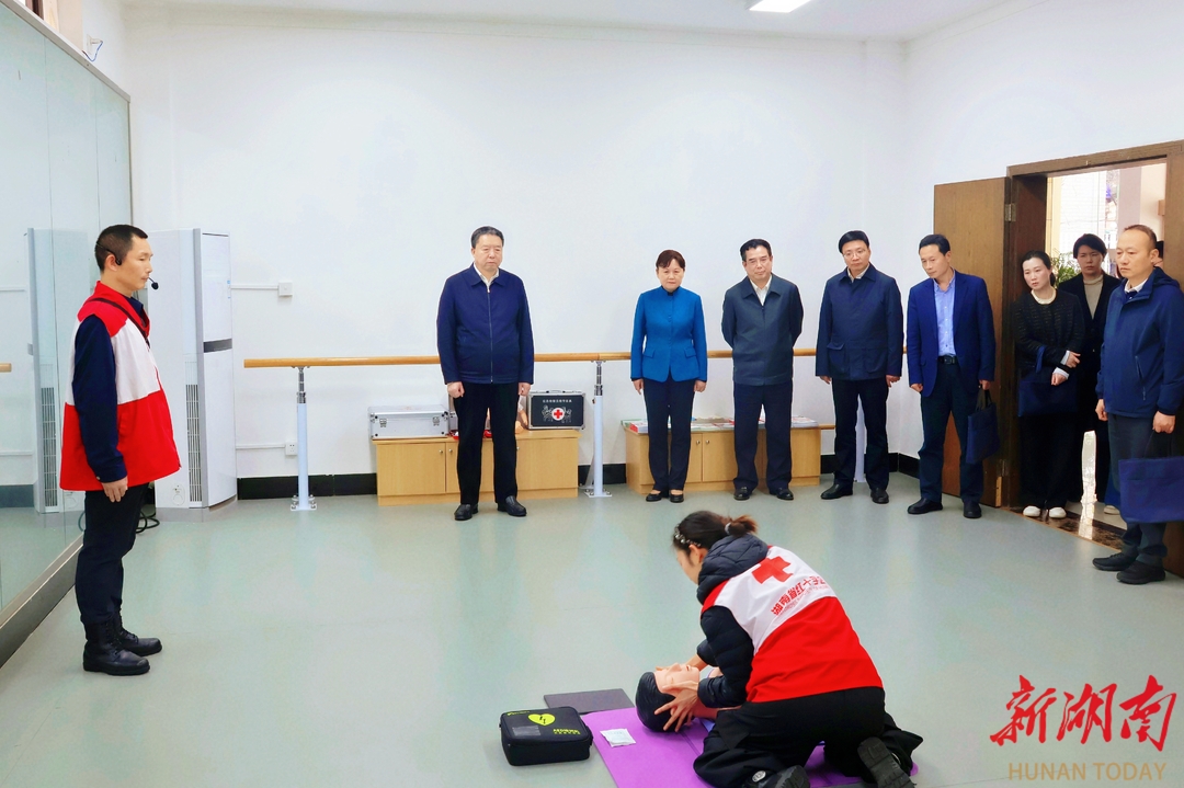 在省红十字会,调研组一行现场观摩应急救护培训实操演练,详细了解心肺复苏等急救技能教学、应急队伍建设、公众科普推广等工作开展情况。座谈会上,省红十字会负责同志介绍了相关情况;与会人员立足工作实际,从完善政策保障、加强队伍建设、创新服务模式、提升品牌影响力等方面提出意见建议。