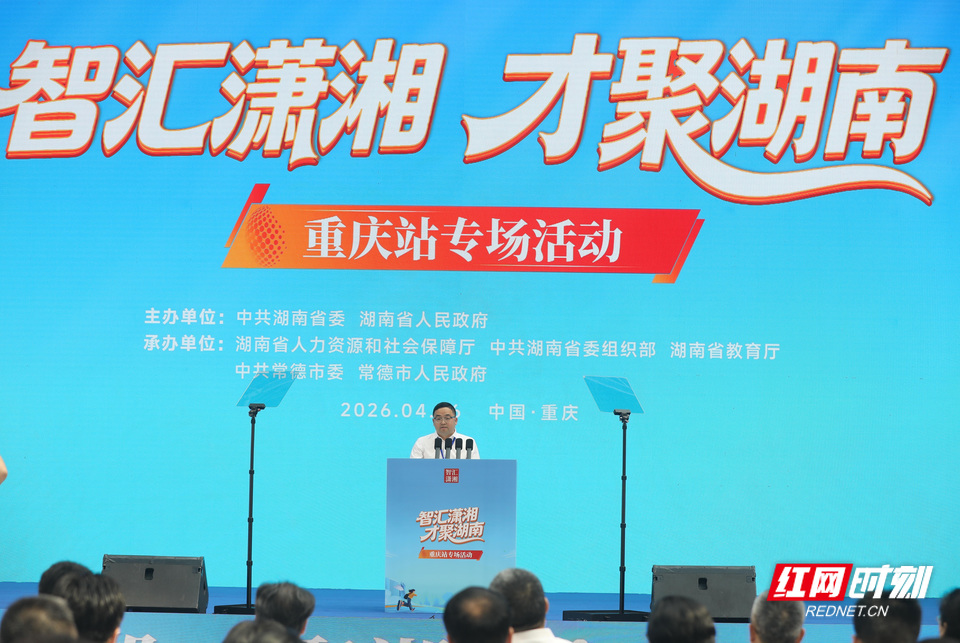 刘方亮现场推介湖南创新创业优势:渝湘高铁高效连通,重庆至长沙最快4小时直达,事业亲情两不误;科研资金、安家补贴、子女入学、医疗保障全链条覆盖,一站式兑现;湖南锚定“三高四新”美好蓝图,产业体系完善、发展赛道宽广,让青年学有所用、才尽其展。他还力荐常德,称这座城市兼具诗意田园与烟火气息,是宜居宜业的奋斗热土,“择一城终老,遇一域圆梦,常德值得选择”。