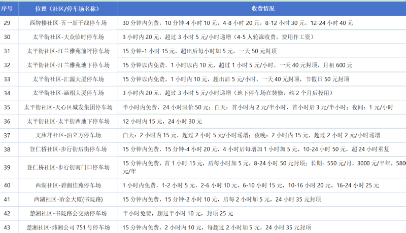 从黄兴路步行街北入口到湘江中路,从悦方ID MALL到海信广场,从太平街西地下到南门口,这些停车场覆盖核心路段及周边支路,全部实行明码标价。