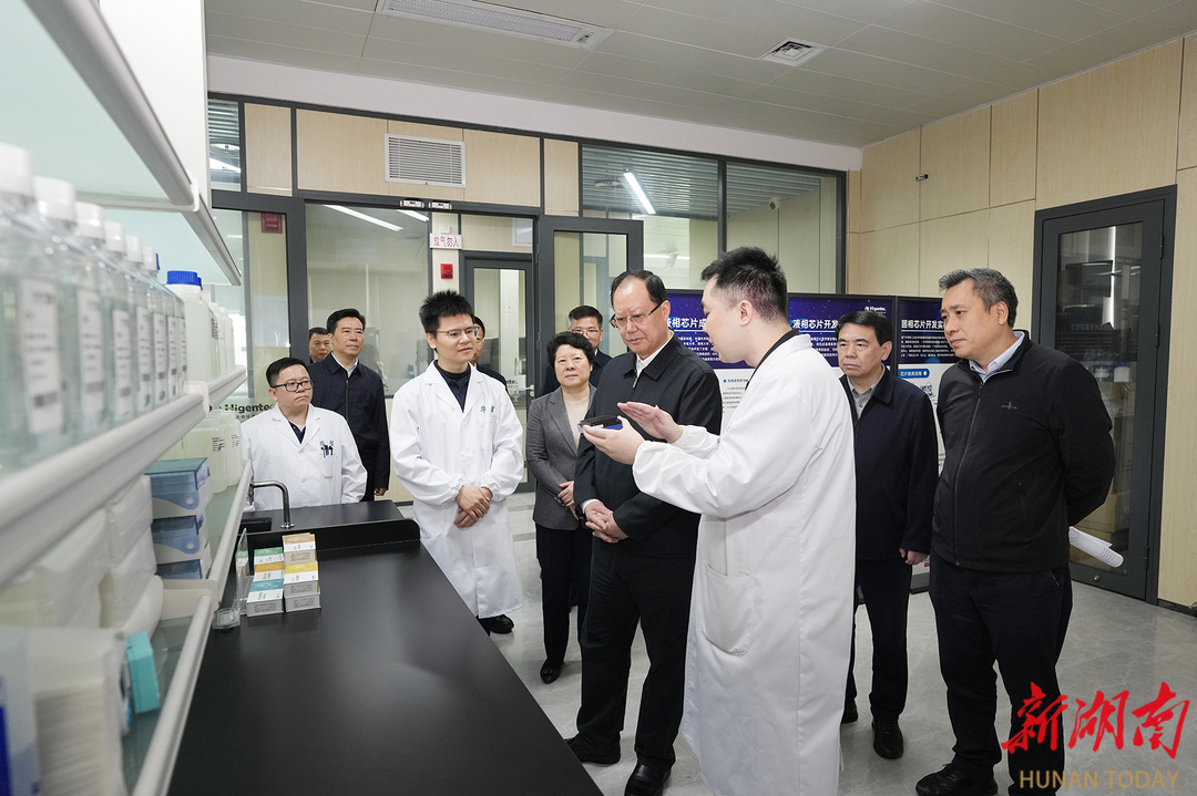 华智生物是国家级分子育种创新服务平台,已累计为80个物种开发217款液相育种芯片,入选国家级专精特新“小巨人”企业。在企业研发中心,毛伟明一行详细了解最新研发成果。他指出,种子是农业的“芯片”。要充分发挥湖南种质资源丰富、农业科研人才集聚等优势,加快“大院、大校、大产业”协同创新,着力在推进关键核心技术攻关上取得新成果,努力实现种业科技自立自强、种源自主可控。