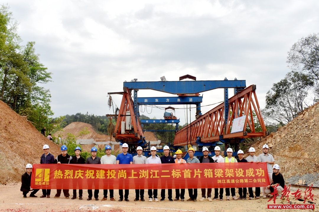 浏江二标首片箱梁架设成功。(通讯员供图)
