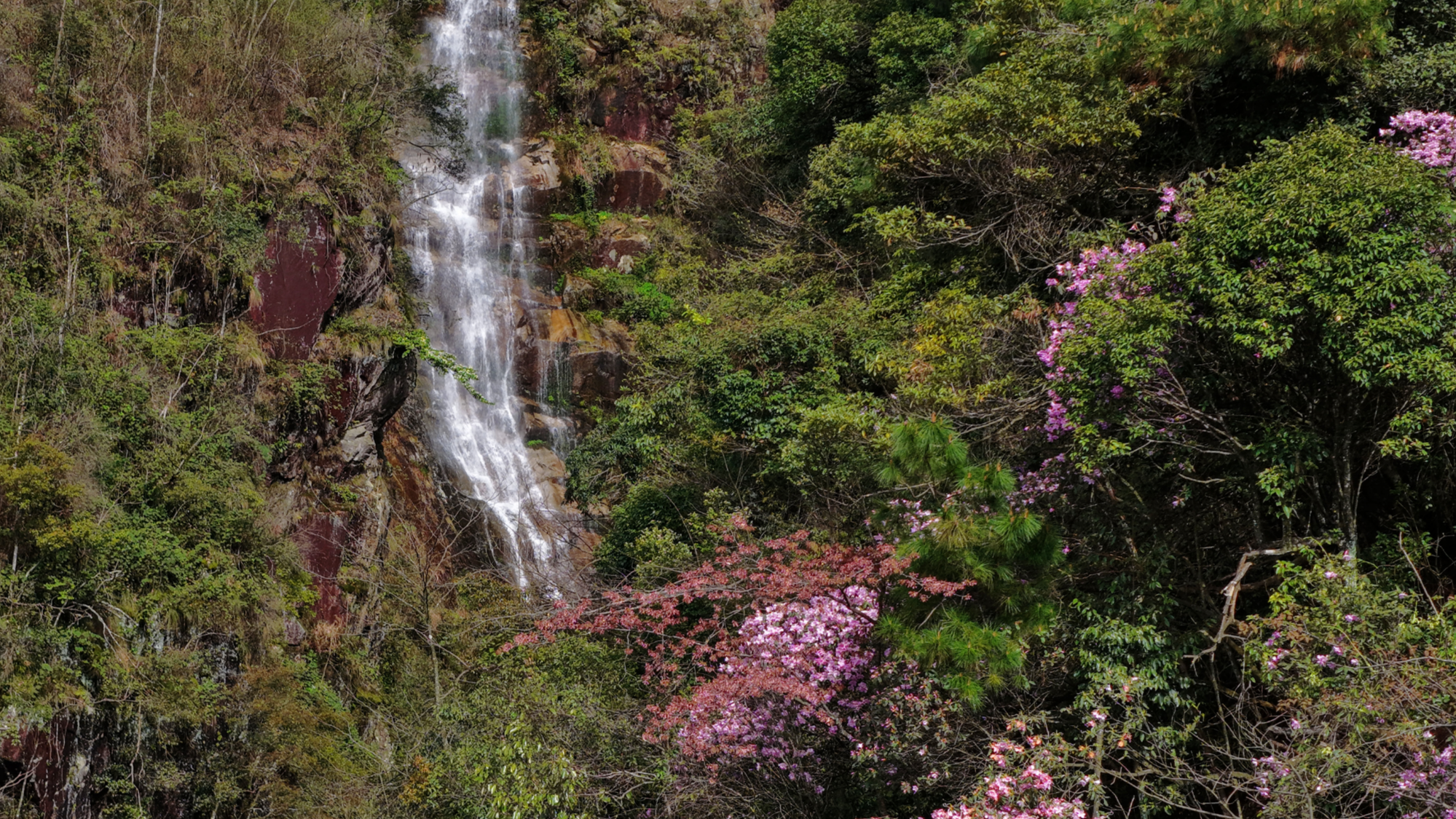 舜皇山瀑布与鹿角杜鹃(朱巨滨摄)