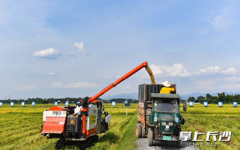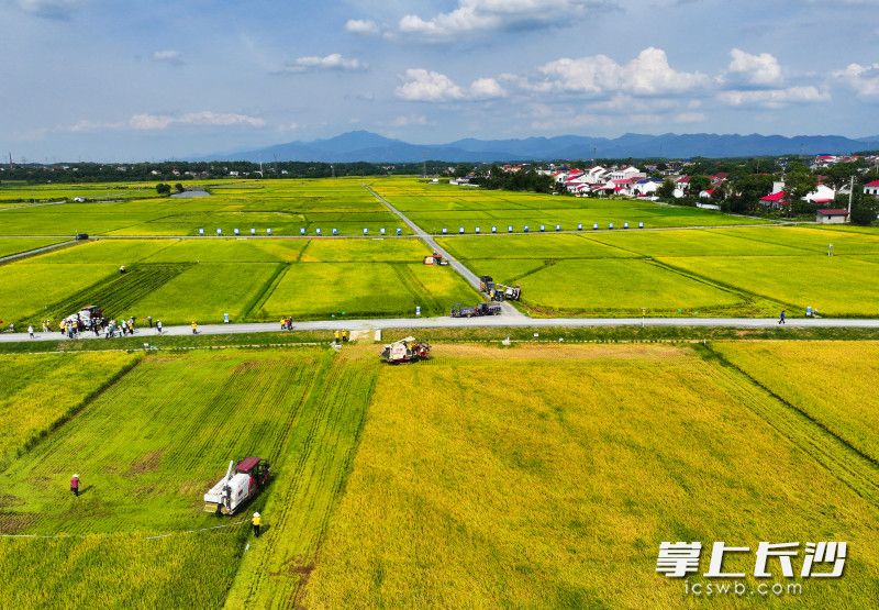 7月13日下午,浏阳沙市镇河背村,万亩连片的稻田里,炙热的阳光曝晒着金灿灿的谷子,长沙市粮食生产“四高”试验示范区暨粮食生产万亩综合示范片早稻测产活动在这里举行。