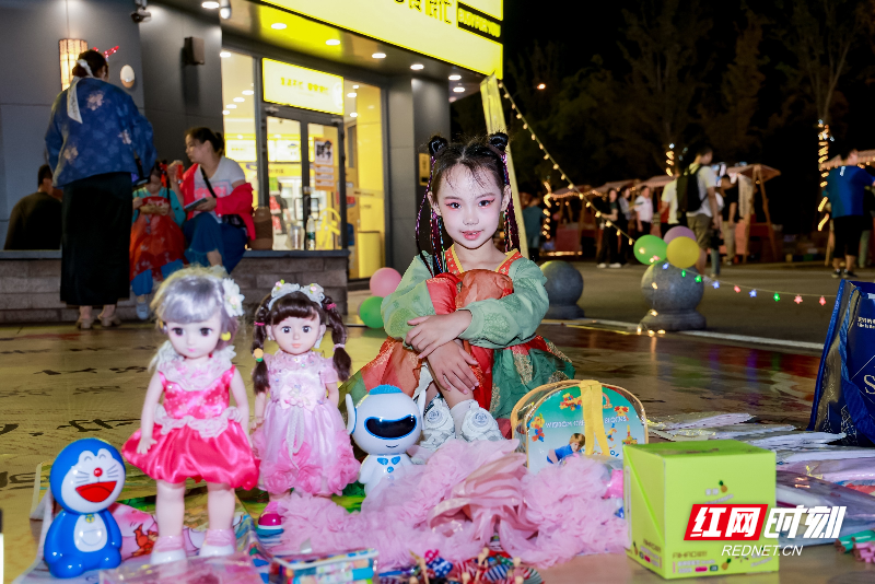 湘剧、湘曲、民歌在红星里城市广场轮番上演,核雕面塑、糖画剪纸、甜酒酱鸭等十余种非遗作品在红星里商业街集中亮相!多名非遗传承人现场言传身教,吸引大批市民游客驻足参观。除此之外,集市的萌娃摊主也引起了一些市民的好奇。他们身穿汉服,用稚嫩的童声“招揽”生意。在儿童专属摊位上进行爱心义卖或者旧物置换,孩子们在欢声笑语中增加了社会实践能力,同时,也近距离学习非遗精神,传承非遗文化。
