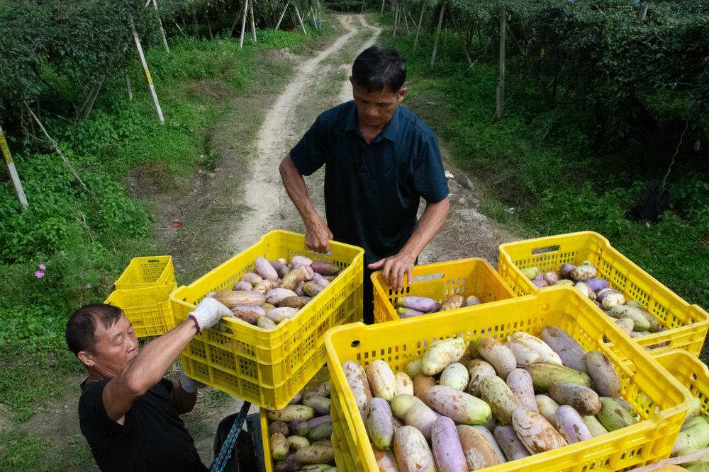 时刻新闻 —分享— 眼下,湖南省永州市蓝山县果农正忙着采摘八月瓜、猕猴桃等特色水果,以满足市场需求。近年来,蓝山县通过实施良种嫁接培育、增施有机肥等技术,因地制宜种植八月瓜、猕猴桃等特色水果共7万余亩,有效促进农业增效、农民增收。9月20日,湖南省永州市蓝山县县城一食品科技公司,公司员工打包八月瓜。 新华社记者 柳王敏 摄9月20日,湖南省永州市蓝山县所城镇舜源村猕猴桃种植基地,当地果农在采摘猕猴桃。 新华社记者 柳王敏 摄9月20日,湖南省永州市蓝山县所城镇高良头村八月瓜种植基地,当地果农将八月瓜装车。 新华社记者 柳王敏 摄9月20日,湖南省永州市蓝山县所城镇高良头村八月瓜种植基地,当地果农在采摘八月瓜。 新华社记者 柳王敏 摄 来源:新华社 编辑:李丽