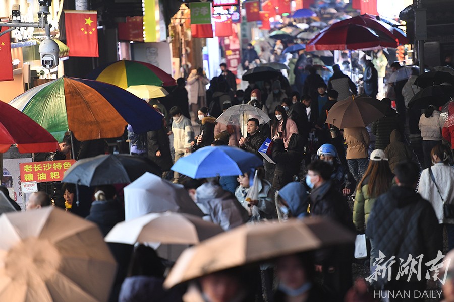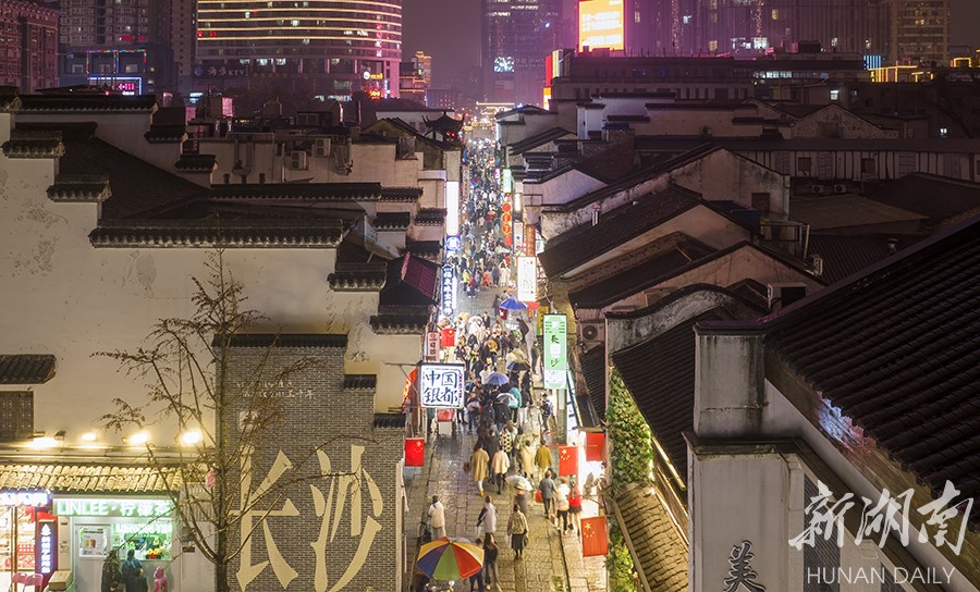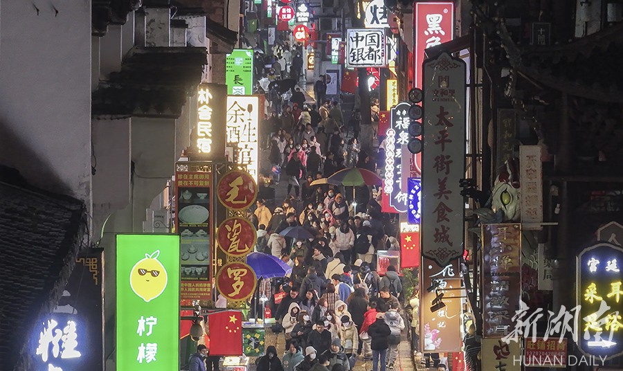 2月3日晚,长沙市天心区太平街人头攒动,热闹非凡。春节假期已过,长沙岳麓山、橘子洲、五一商圈等景区依然游人如织。很多游客避开春节假期旅游热潮,错峰出行游玩,“网红长沙”热度不减。湖南日报全媒体记者 辜鹏博 摄