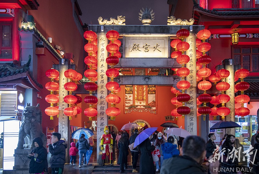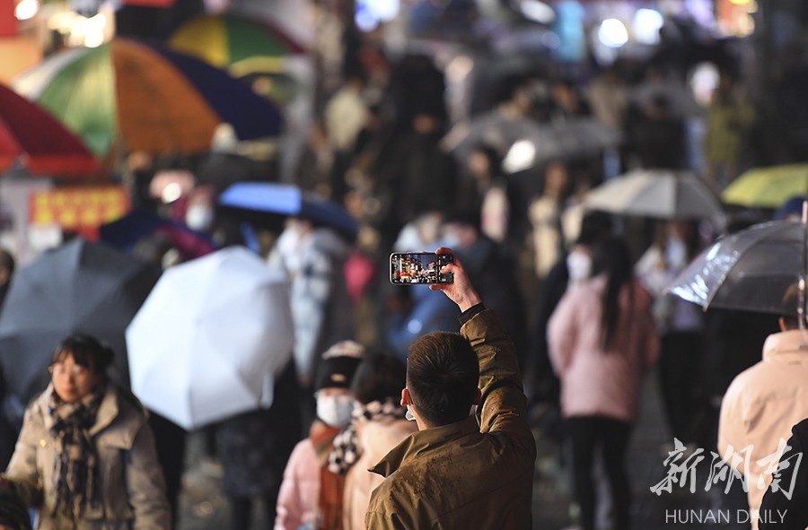 2月3日晚,长沙市天心区火宫殿人头攒动,热闹非凡。春节假期已过,长沙岳麓山、橘子洲、五一商圈等景区依然游人如织。很多游客避开春节假期旅游热潮,错峰出行游玩,“网红长沙”热度不减。湖南日报全媒体记者 辜鹏博 摄