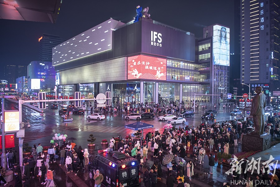 2月3日晚,长沙市国金中心附近人头攒动,热闹非凡。春节假期已过,长沙岳麓山、橘子洲、五一商圈等景区依然游人如织。很多游客避开春节假期旅游热潮,错峰出行游玩,“网红长沙”热度不减。湖南日报全媒体记者 辜鹏博 摄