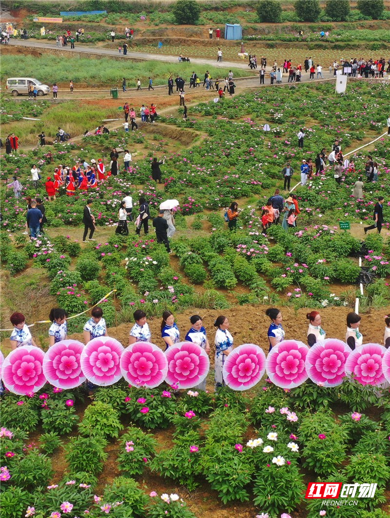 红网时刻新闻4月10日讯 (通讯员 黄春涛)4月9日,郴州市嘉禾县坦坪镇栗木枫村,旗袍爱好者在芍药牡丹园走秀展示。阳春四月,随着气温攀升,郴州市嘉禾县坦坪镇栗木枫村200多亩芍药牡丹次第开放,满园花香,争奇斗艳,成为春日乡村一道亮丽景观,吸引着许多游客齐聚山野田园踏青赏花,休闲游憩。