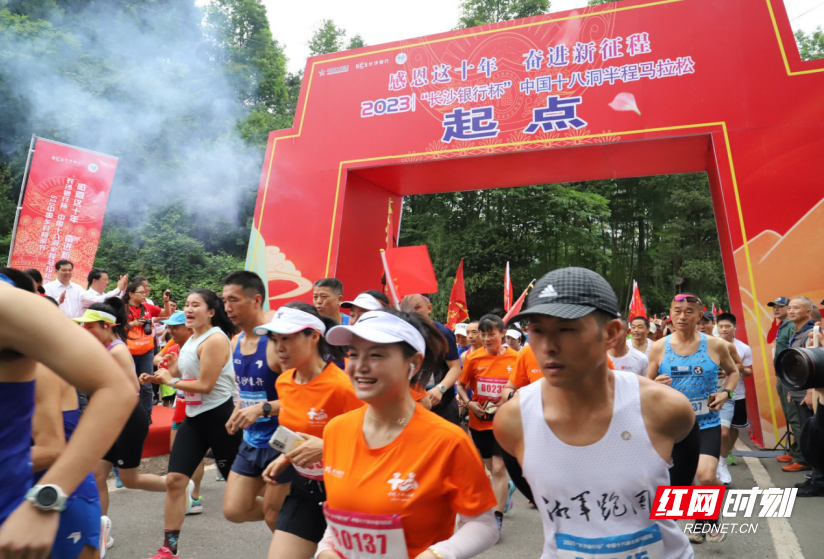 红网时刻新闻5月20讯(通讯员 童辉)“感恩这十年,奋进新征程”。5月20日,2023“长沙银行杯”中国十八洞半程马拉松暨“520”中国乡村相亲节在湘西花垣县十八洞村拉开帷幕,近2000名参赛选手从十八洞村梨子寨出发,奔跑在中国“十大最美农村路”上,感受赛道沿途淳朴的苗家风情和绝美的自然风光,亲身体验精准扶贫“首倡之地”的发展变化。