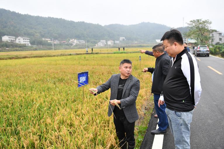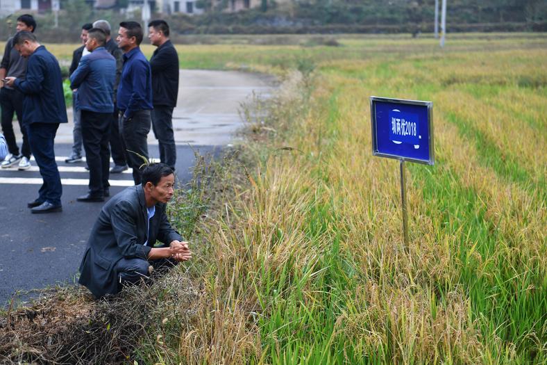 10月28日,在娄底市双峰县石牛乡上茶村,种粮大户们观摩不同品种的再生稻。 新华社记者 陈振海 摄