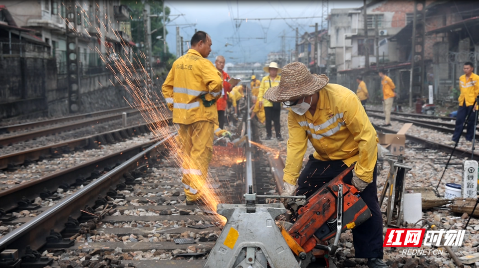 红网时刻新闻7月31日讯(记者 肖帅 通讯员 董剑锋 周源 莫亚哲 实习生 肖雨晴)近日,在湖南雪峰山的深处,广铁集团娄底工务段组织人员对沪昆普速铁路进行了一场钢轨“接骨手术”,即对伤损钢轨进行替换,利用高温将两段钢轨焊接成无缝线路,减少线路颠簸,提高旅客乘车舒适度。