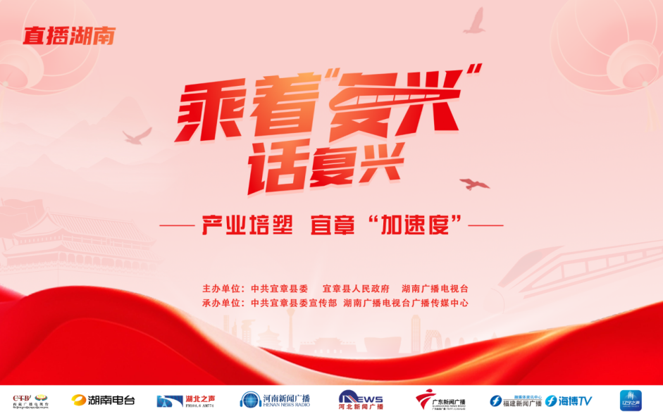 12月26日,武广高铁开通15周年之际,湖南电台“直播湖南”特别节目携手广东、福建、湖北、河北、河南、辽宁、西藏等八省(区)广播电视台,推出融媒体新闻直播《乘着“复兴”话复兴——产业培塑,宜章“加速度”》。