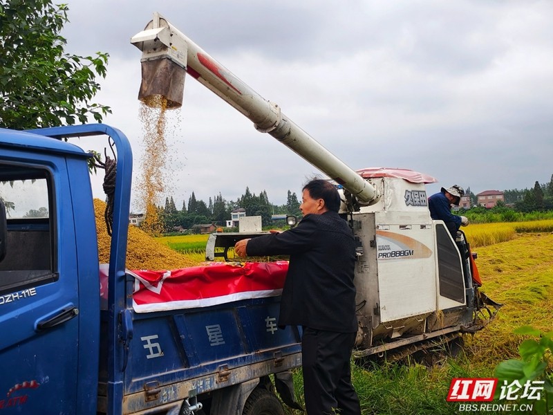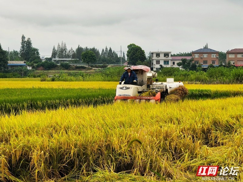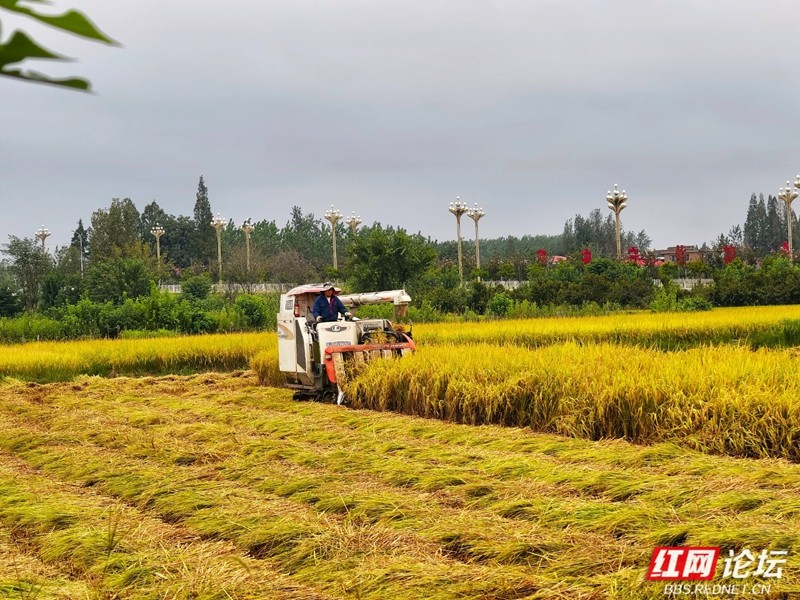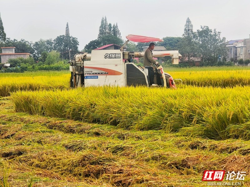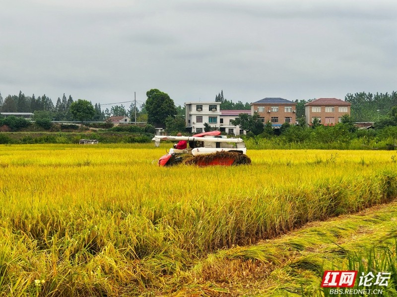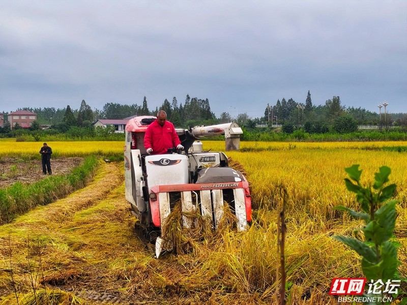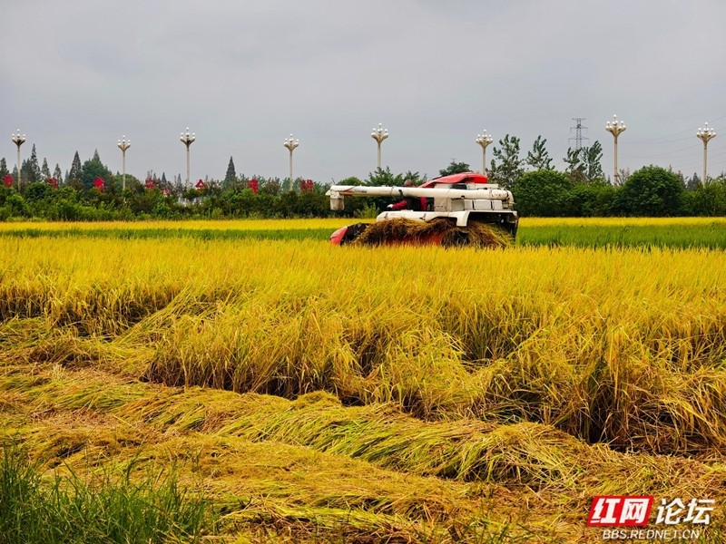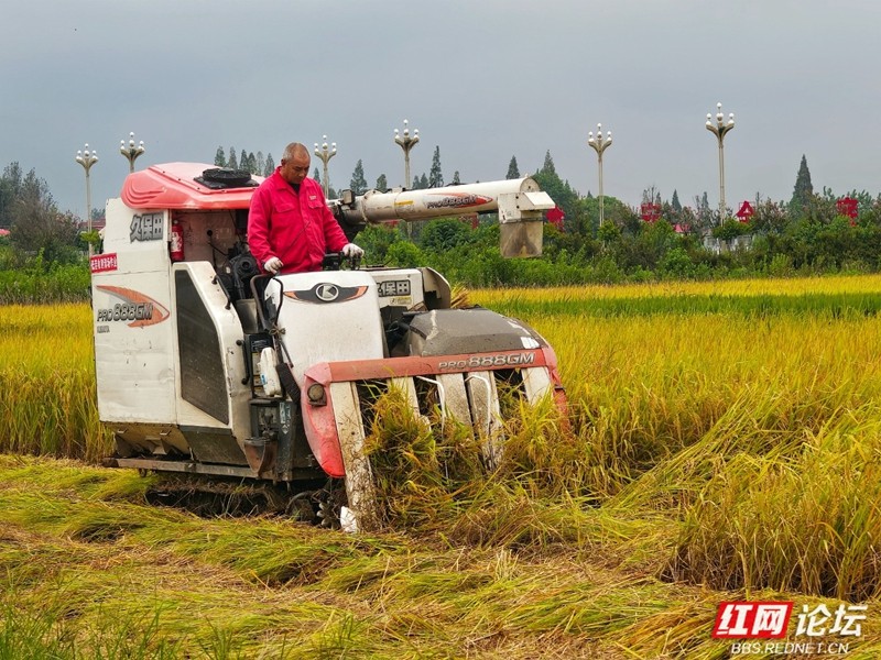 机器轰鸣声里奏响丰收序曲。(图源:红网论坛@侯若平)