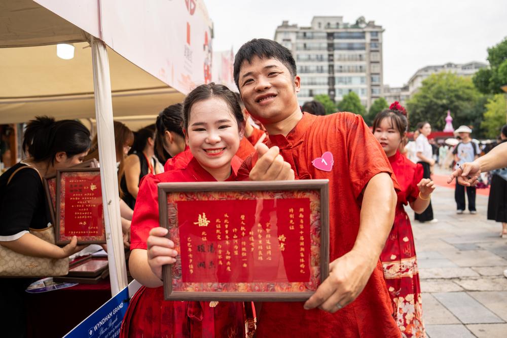 本次活动旨在通过融合传统婚俗与国潮元素,倡导“婚事新办简办”的文明新风,引导广大青年树立健康、文明、节俭的婚恋观,为新人留下了难忘的浪漫记忆。