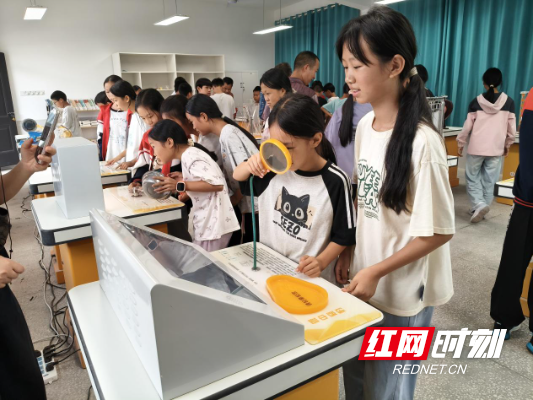 针对不同年级学生的特点,“科普专家团队”量身定制了丰富的课程内容。高年级开设了科技生活关联课、AI互动课,通过实验操作让学生亲手探索科学原理;同时推出人脸识别体验、数字技术启蒙等实践课程,并从生活实际问题切入,开设发明创意课,激发学生的科技创新意识。低年级则结合光栅板等趣味教具,让孩子们在玩乐中轻松掌握科学知识。