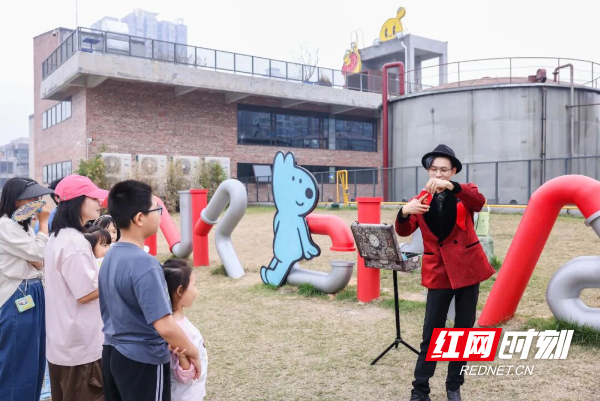戏剧巴士的“神秘魔术师”与孩子们互动。
